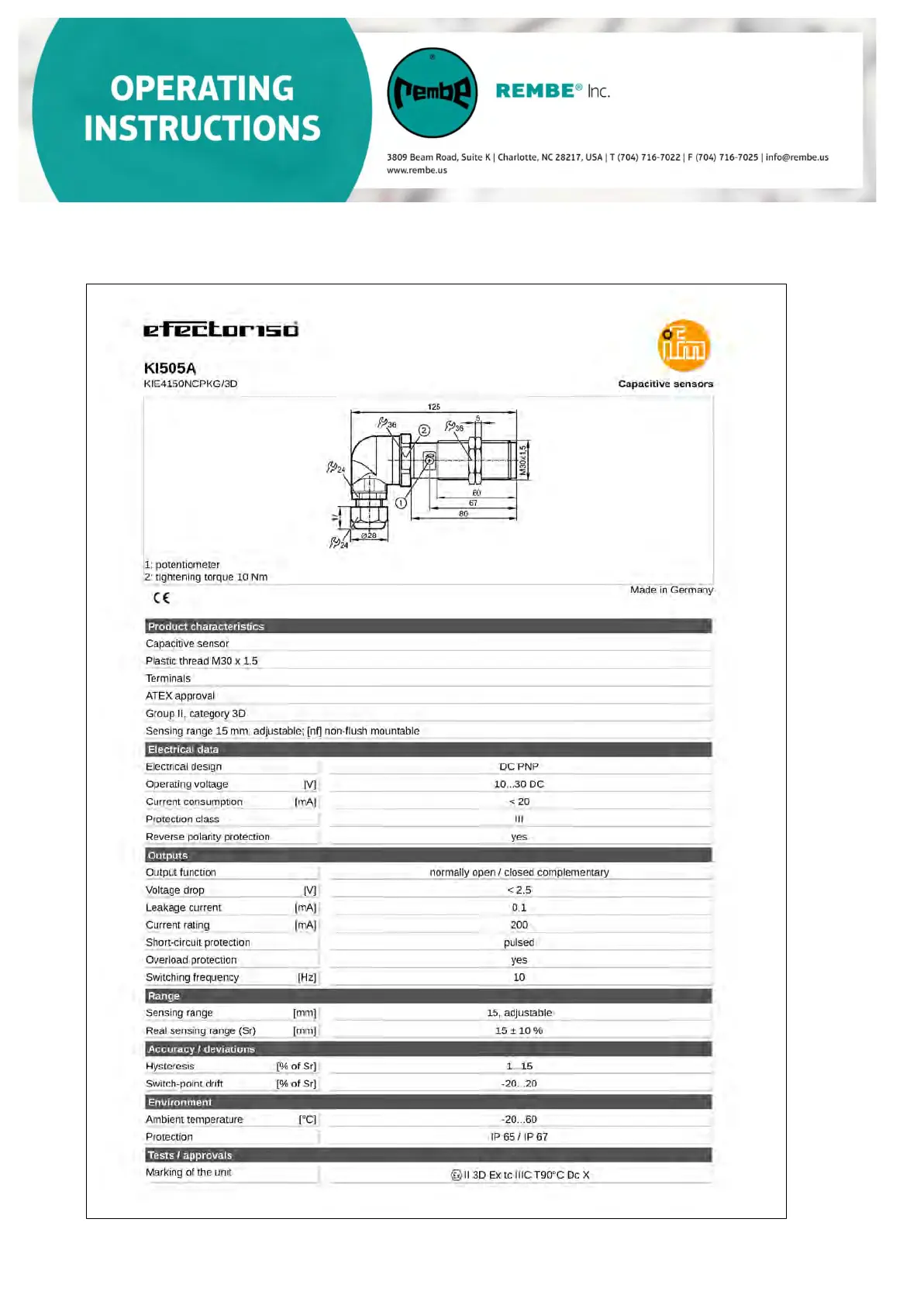 REMBE Q-FlapCompact II - Level Sensor KI505 A Technical Data