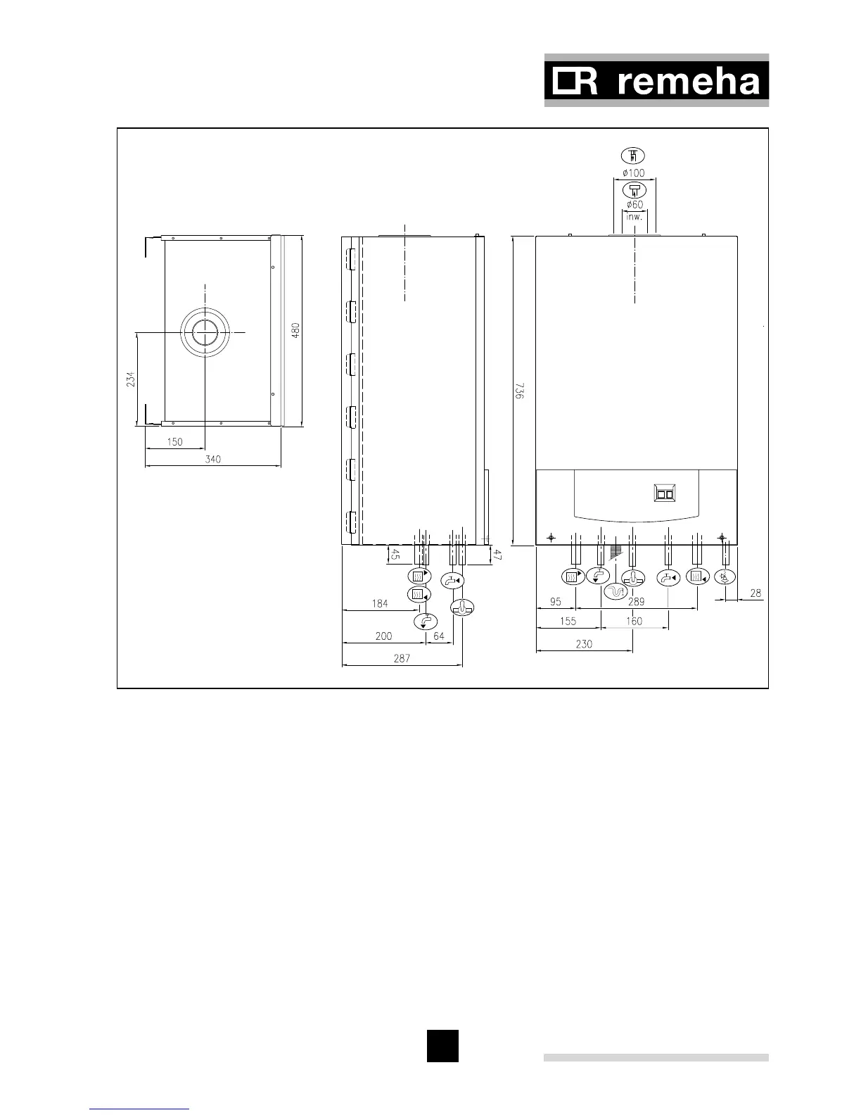 Ð Combustion air supply connection 100 mm Ø i/d