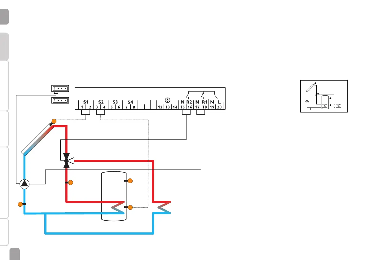 activated by R1 and the 3-port valve by R2 in order to divert excess heat to a heat
