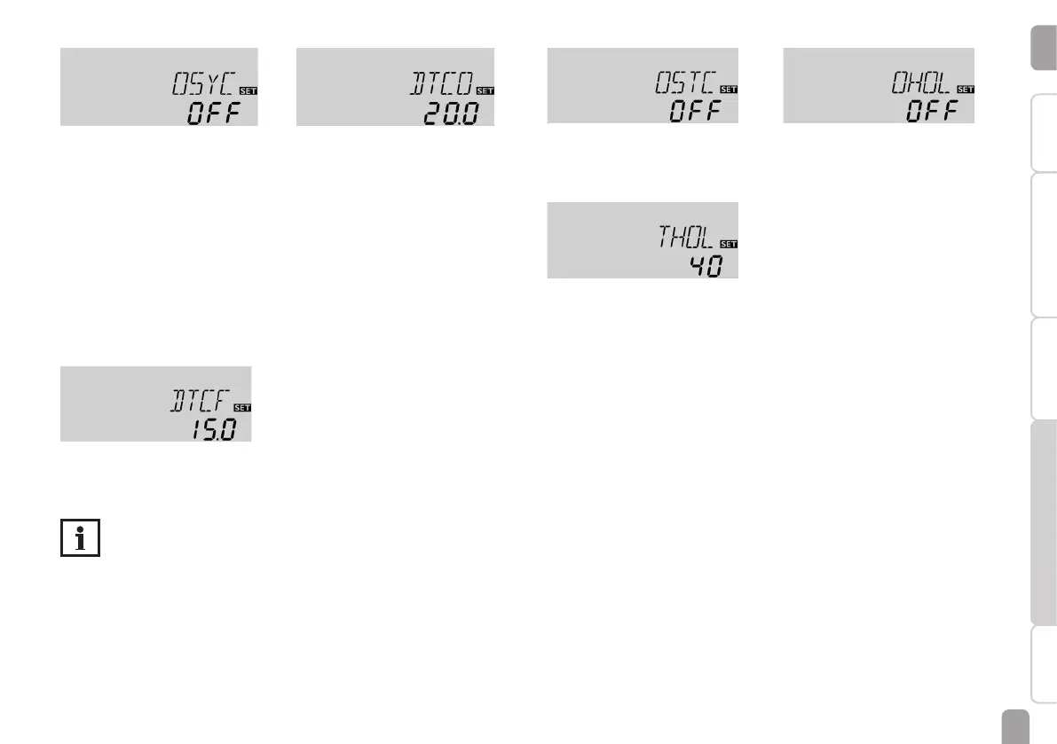is reached. If the system cooling function is active, ⓵ and ☼ are displayed (ashing).