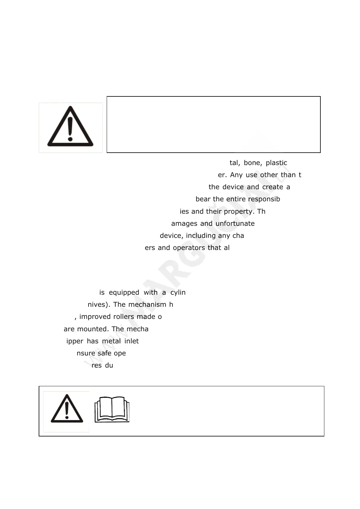 and other materials in the chipper mechanism feeder. Any use other than those