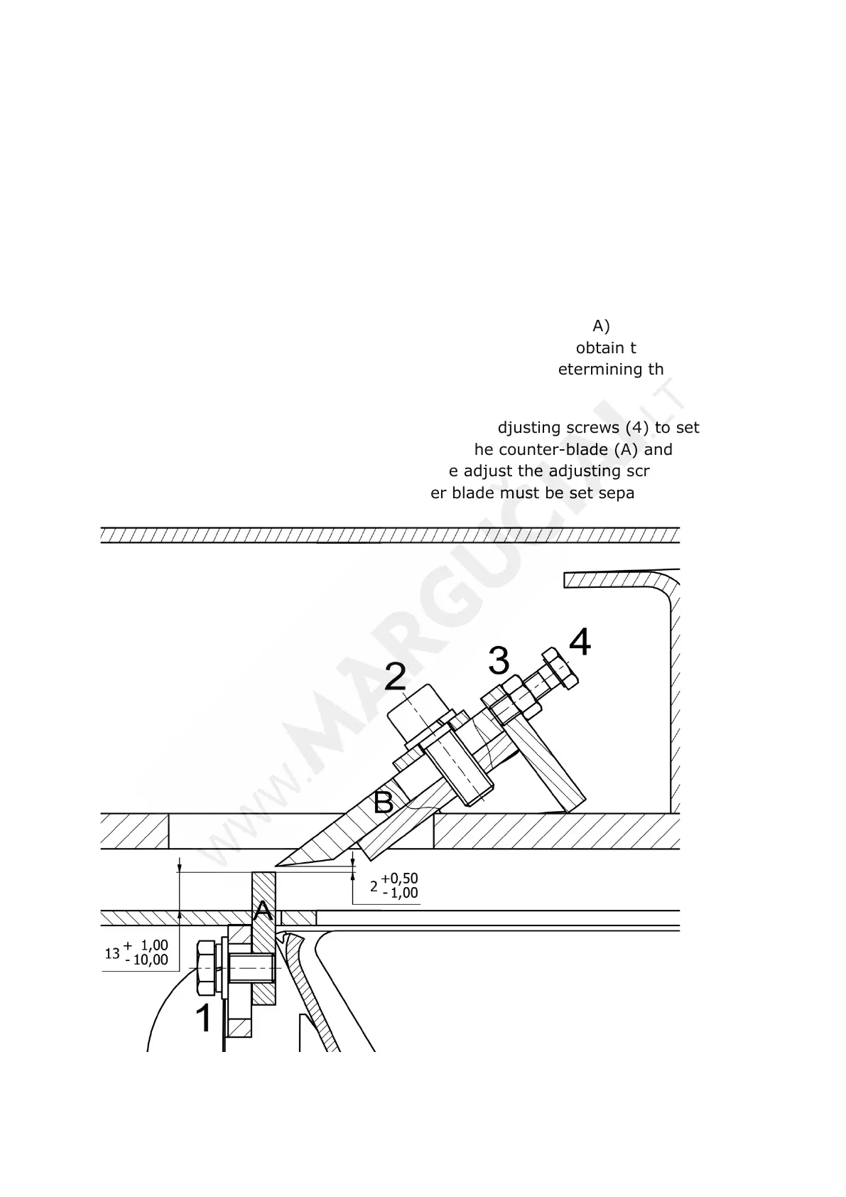 Note: Each blade (B) relative to the counter blade must be set separately with