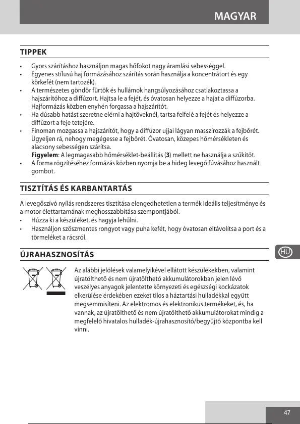 • Finoman mozgassa a hajszárítót, hogy a diúzor ujjai lágyan masszírozzák a fejbőrét.