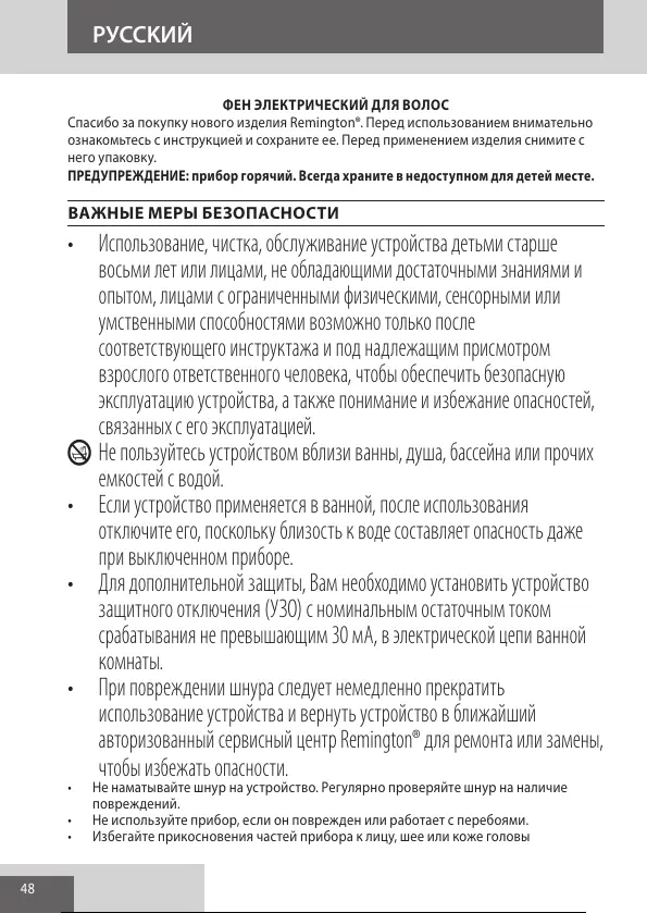 Спасибо за покупку нового изделия Remington®. Перед использованием внимательно