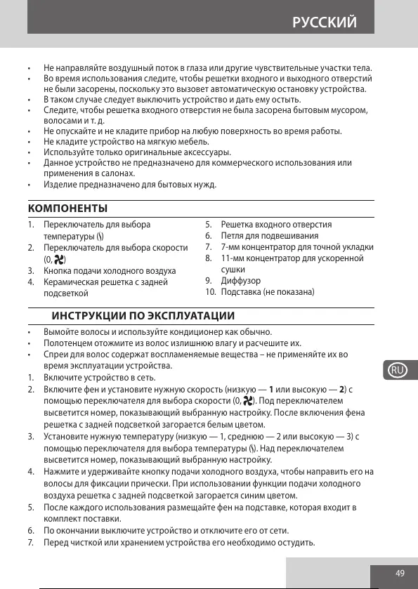 5. После каждого использования размещайте фен на подставке, которая входит в