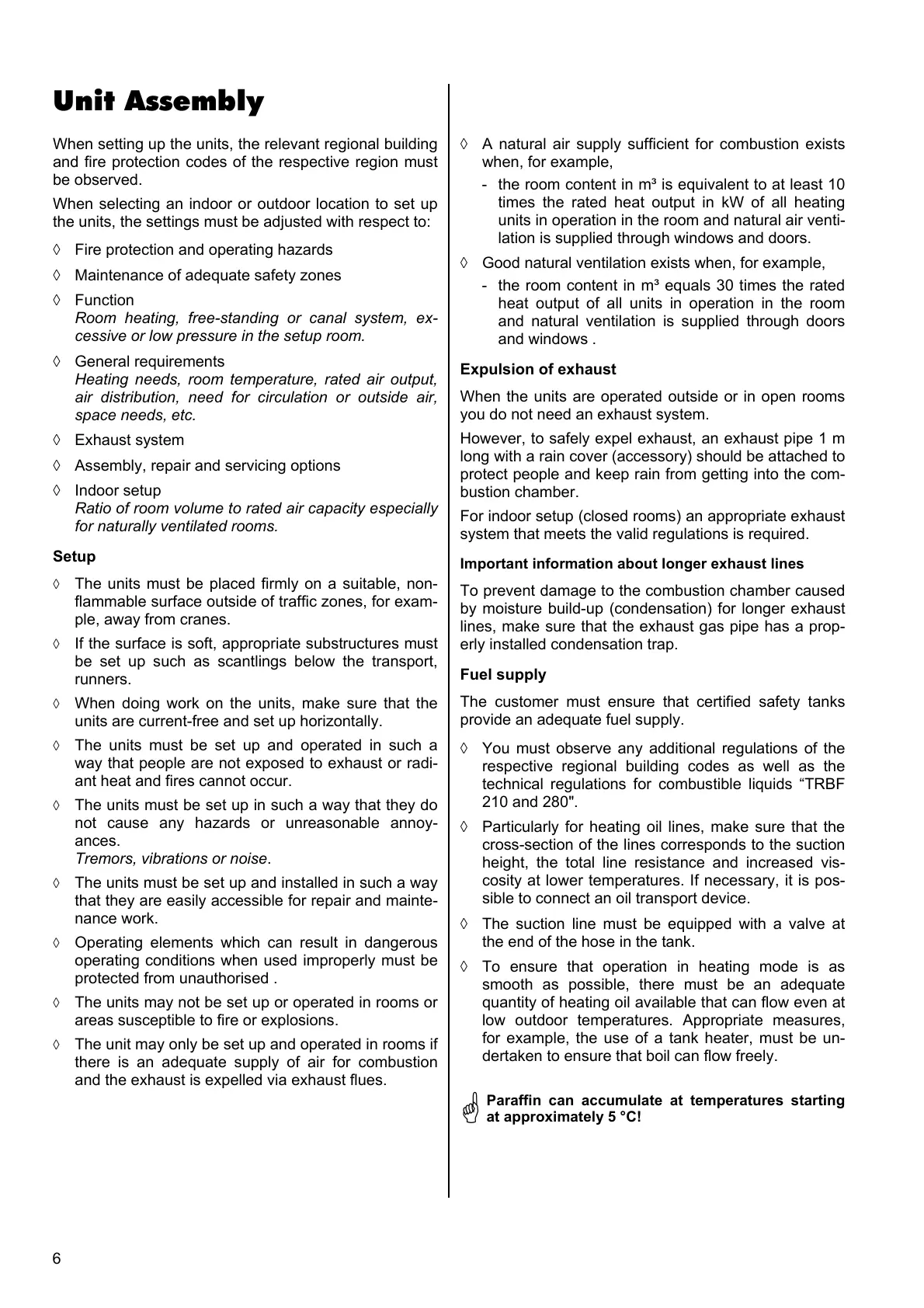 ◊ The units must be set up in such a way that they do