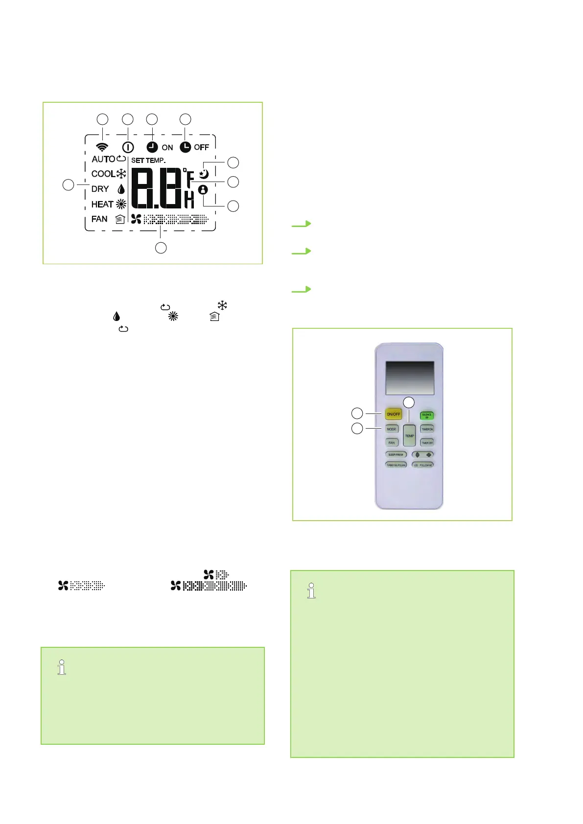 ature setting (-17°C~30°C). If "FAN" mode is