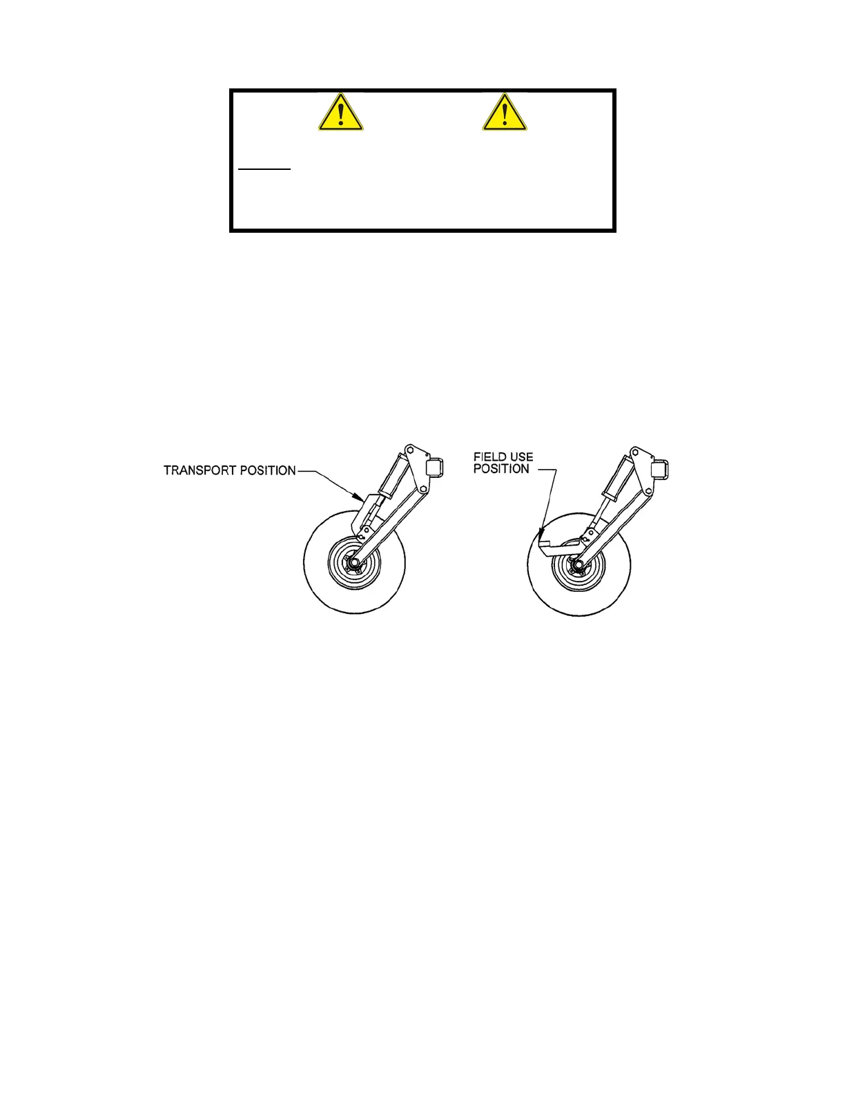 • When transporting a pull-type drill, insert transport locks on cylinders and lower drill to the stops before