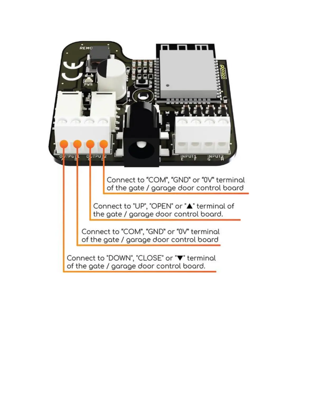 Connect the sensor to terminal 4 of the Remootio 3 unit and use the included adhesives to