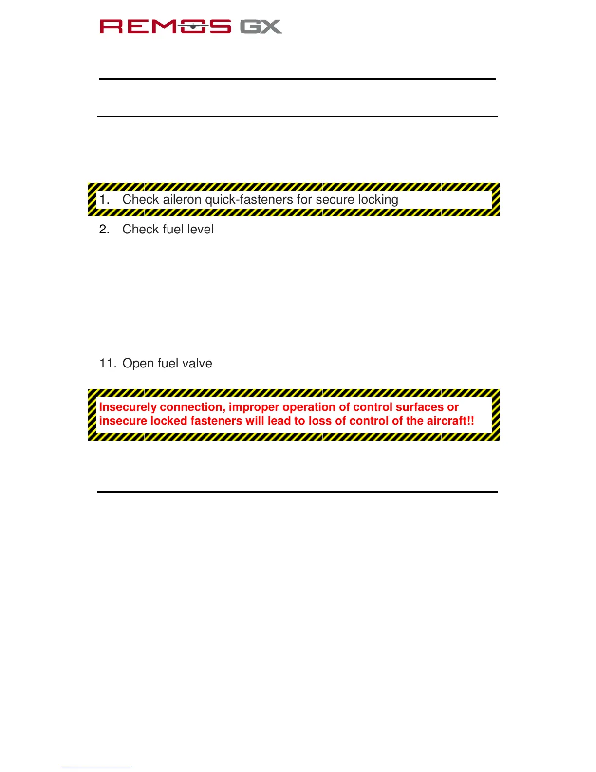 insecure locked fasteners will lead to loss of control of the aircraft!!