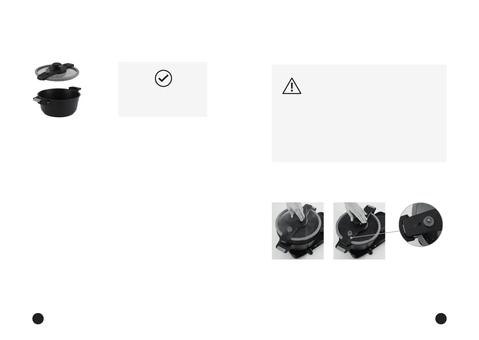 2. Umístěte soft-tlakové víko na hrnec do správné polohy (zasunutí kovových táhel soft-