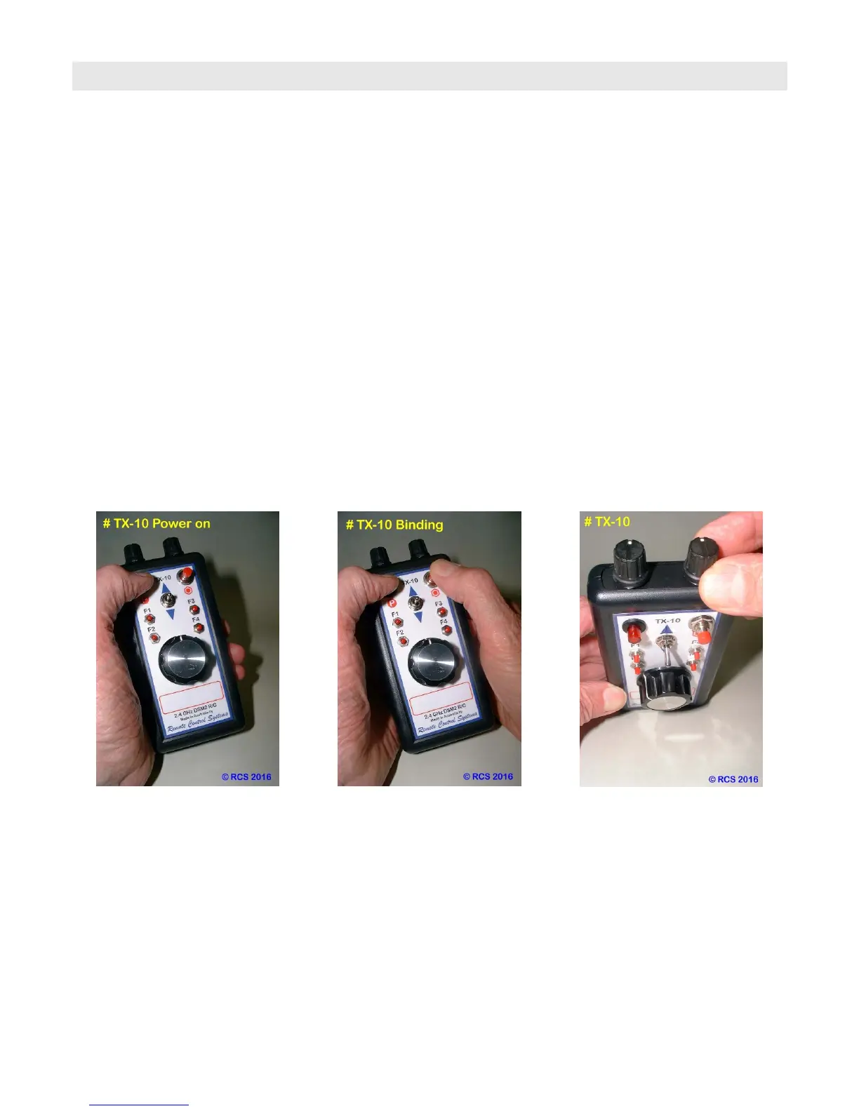 1.1 AUTO-BIND receivers 1.3 below. Turn on the loco power >RX and wait 20 seconds for the RX to enter bind mode.