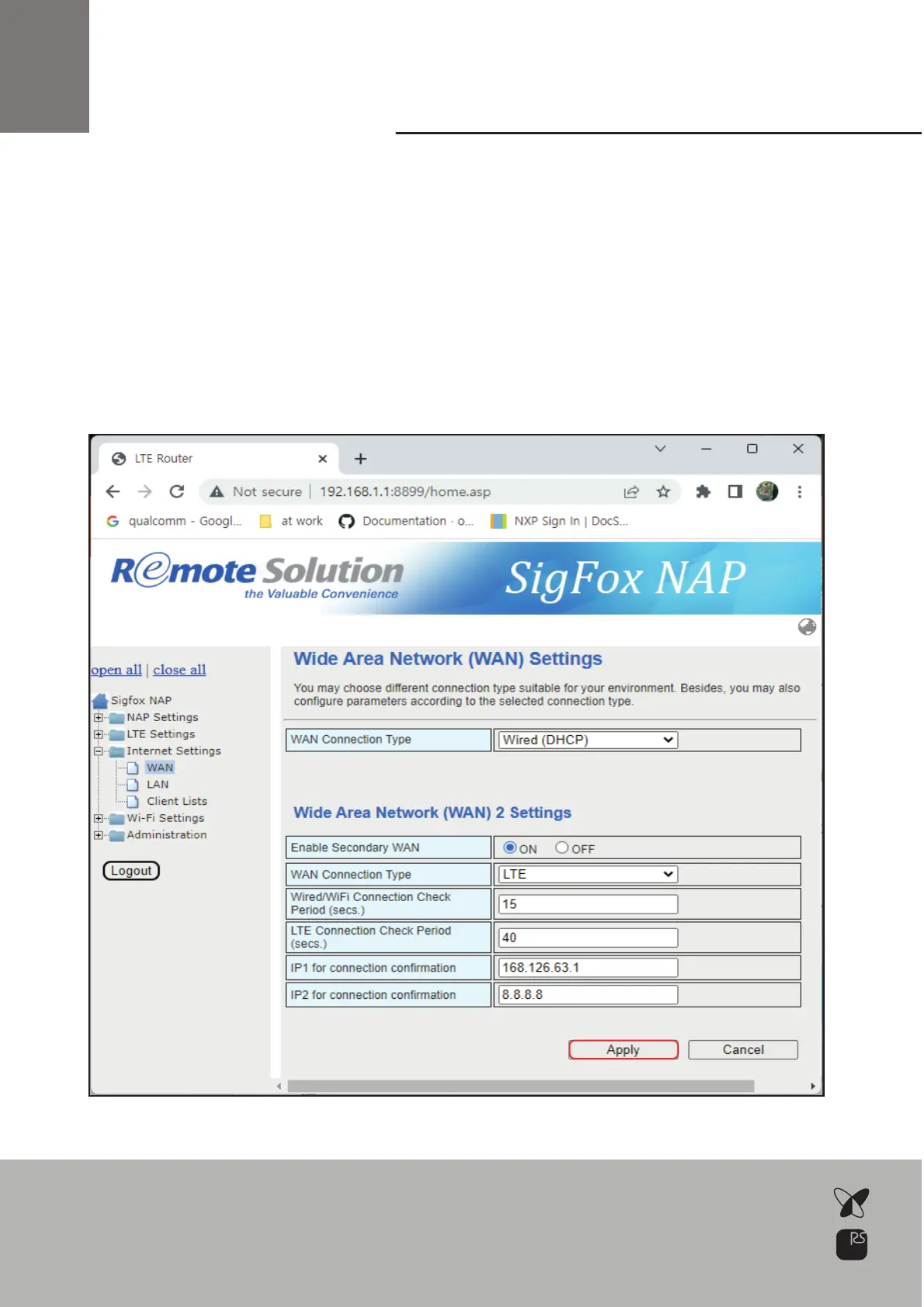 Select WAN Connection type: DHCP/Static/LTE/WiFi(STA)