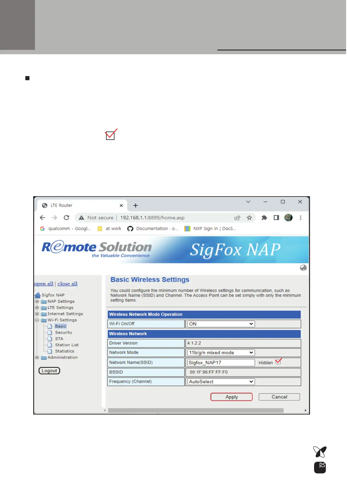 Network Name(SSID): Enter SSID of AP mode, Default is “Sigfox_NAP” 2)