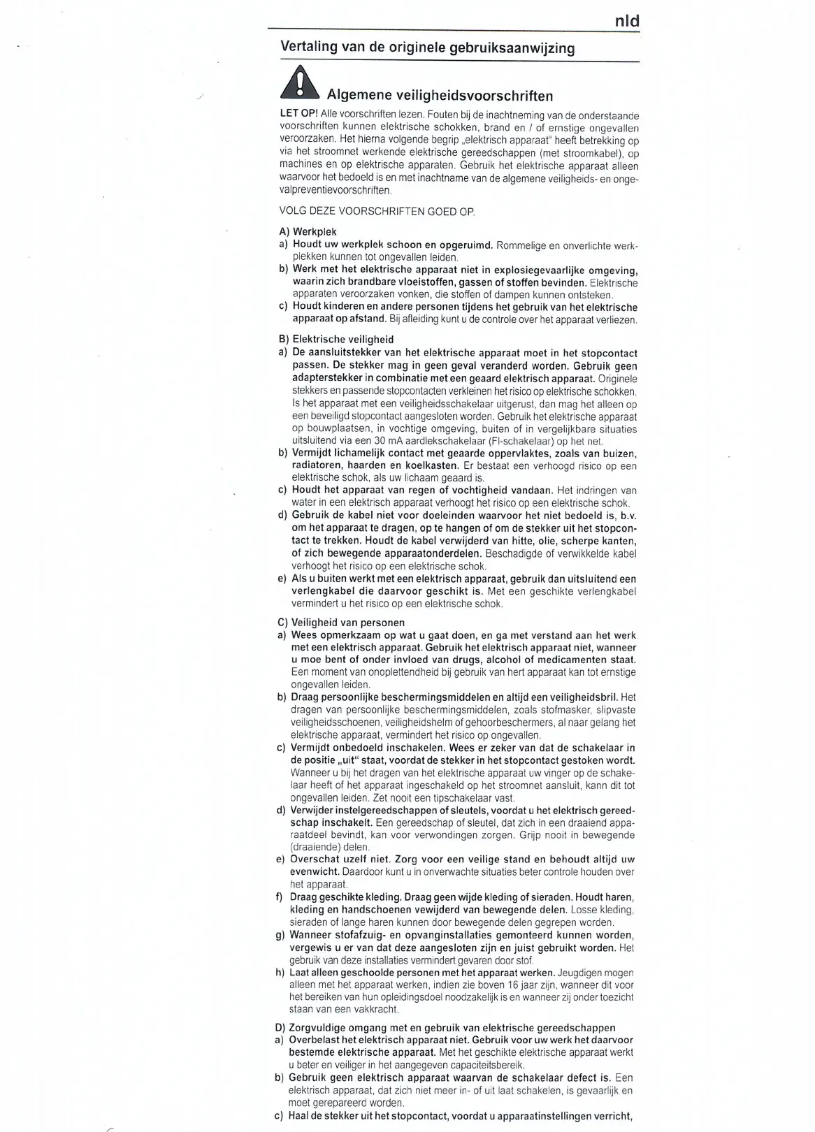 Vertaling van de originele gebruiksaanwijzing