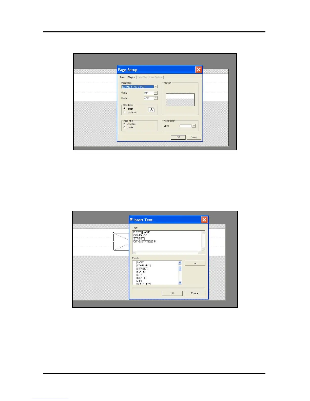 6. Select/insert the fields that you want to be printed, in this text box, and then click OK. The text