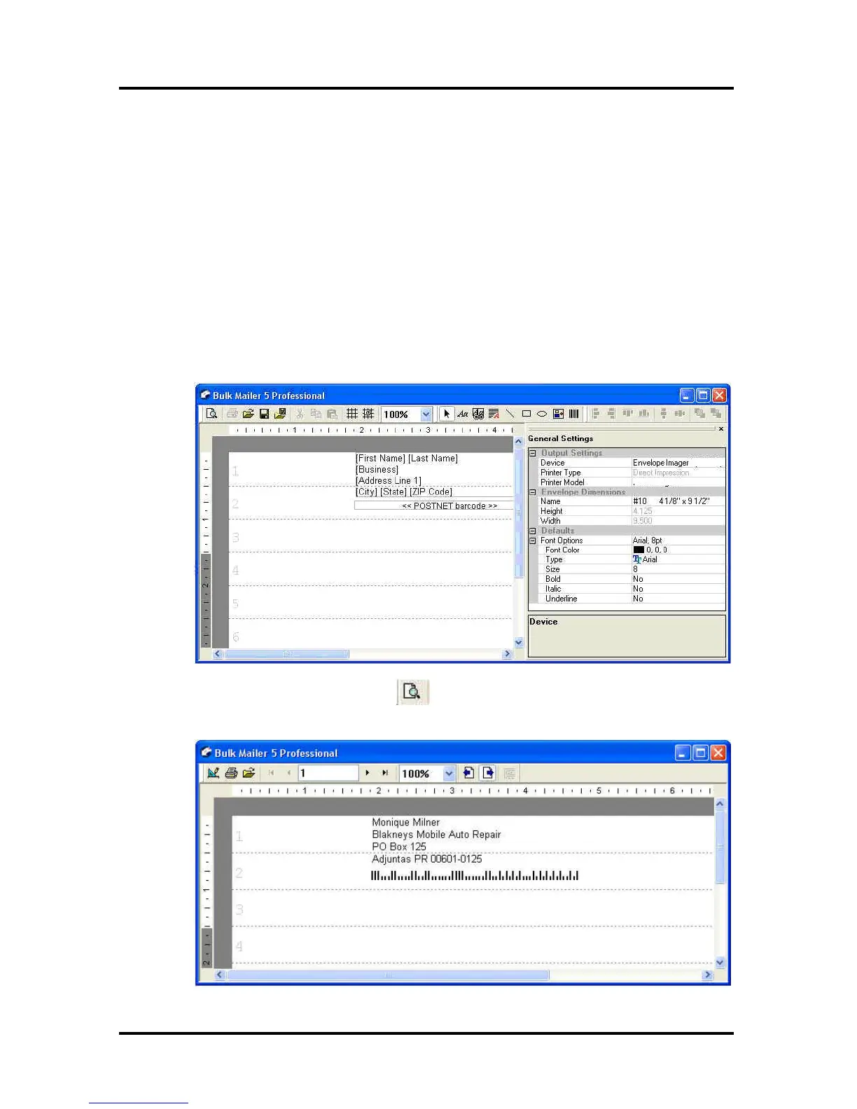 The following is a brief description of how to setup and print from Bulk Mailer 5.0.