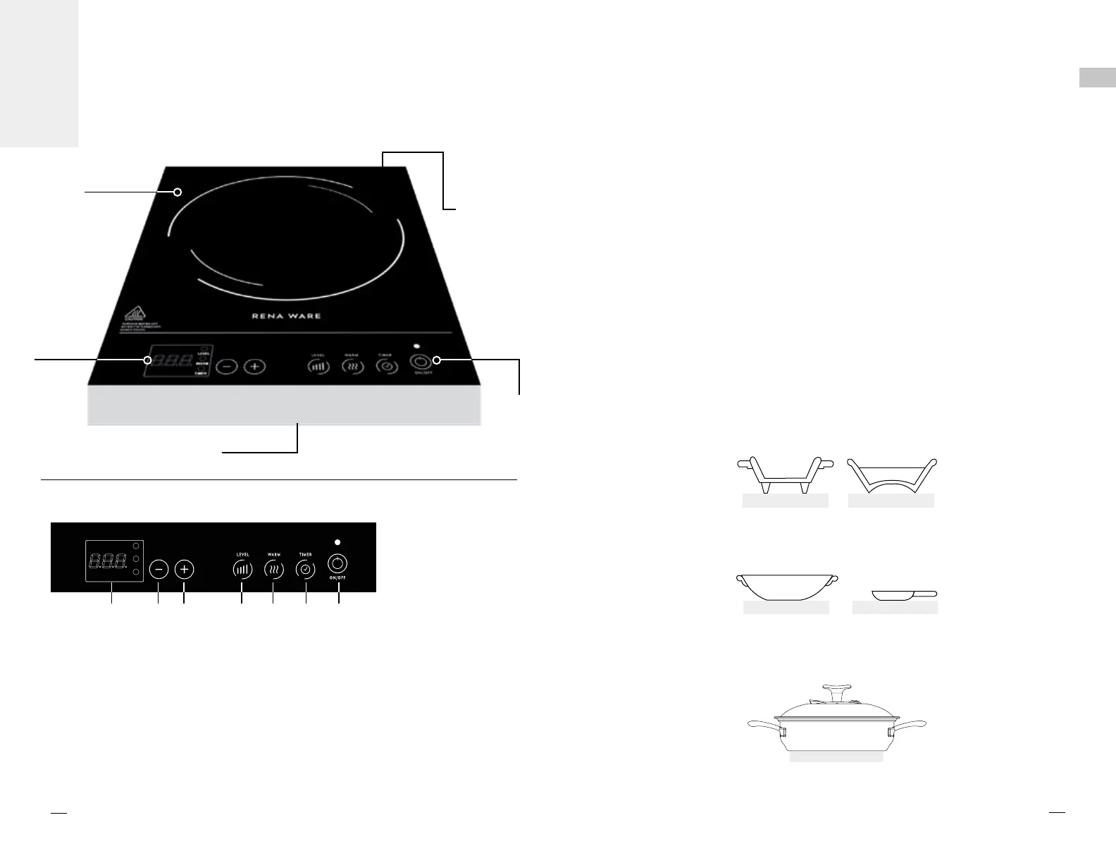 • Your Induction Cooker will work with Rena Ware cookware with the following