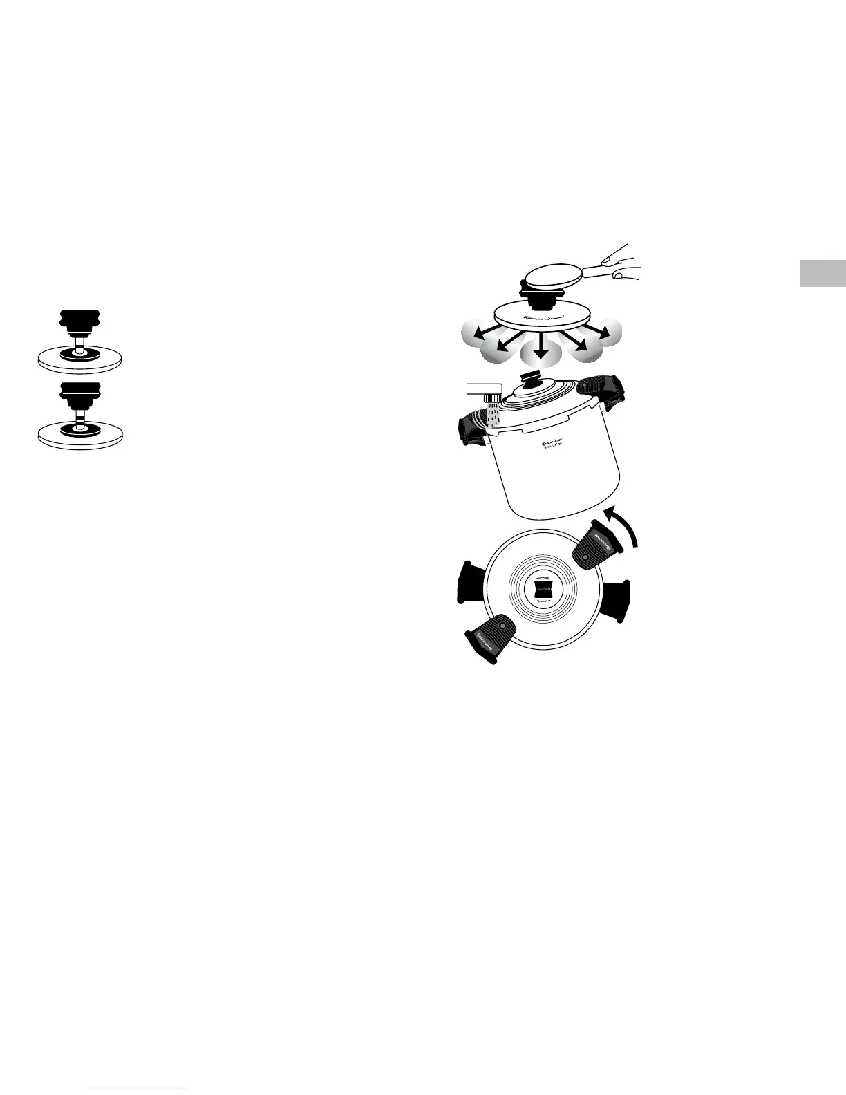 separar las asas, la olla a presión aún está presurizada, no la fuerce. La