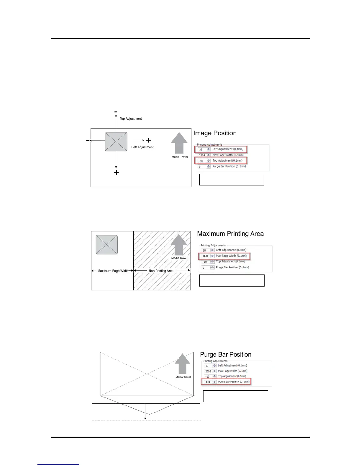 Tip: Set value so purge bar is positioned about 3 mm past the trailing edge of the media.