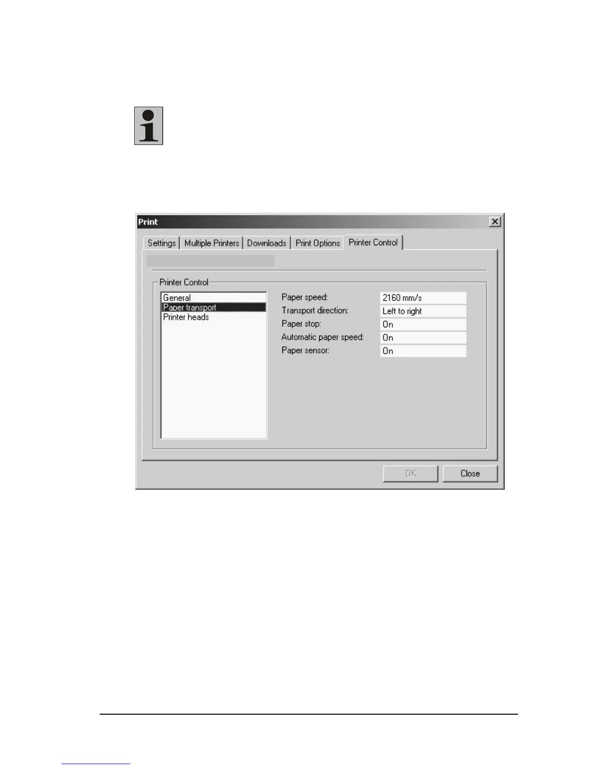 Under the “Paper transport“ option, the “Paper speed:” (paper