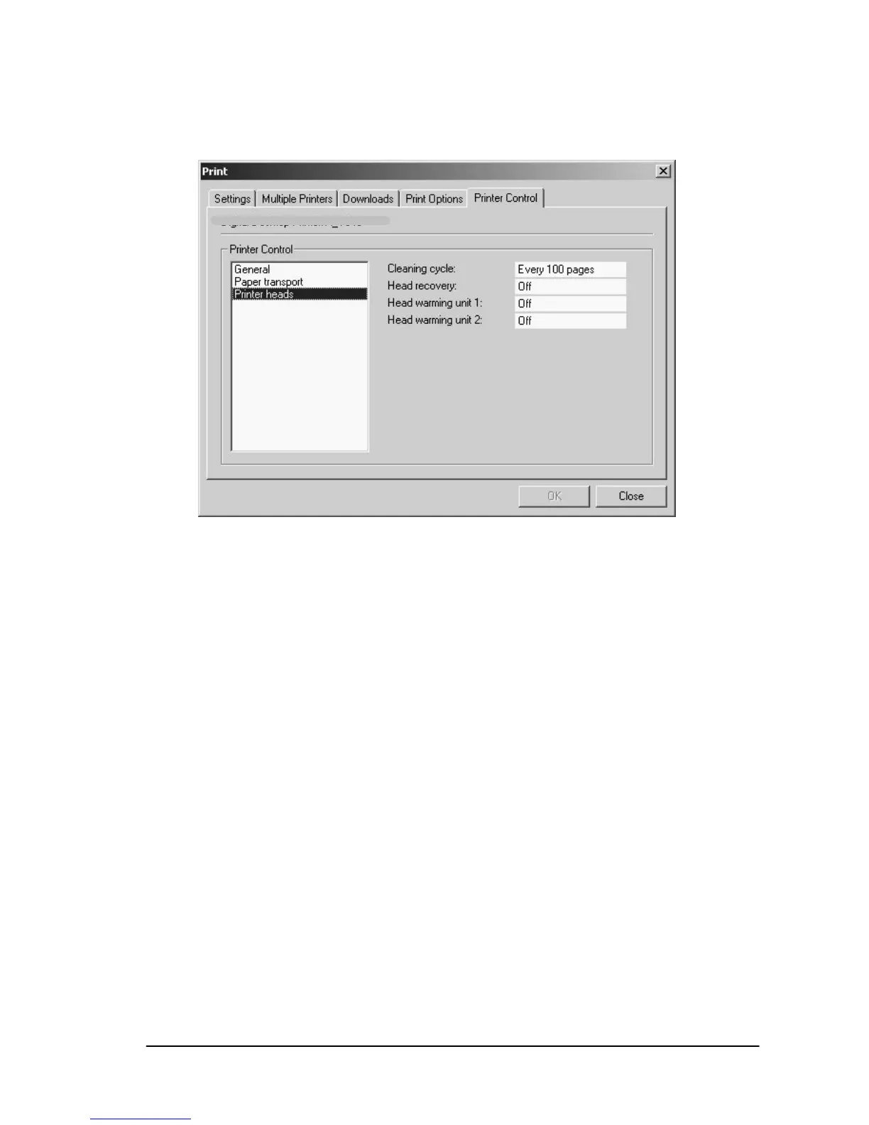 The “Print heads” option allows you to set cartridge cleaning,