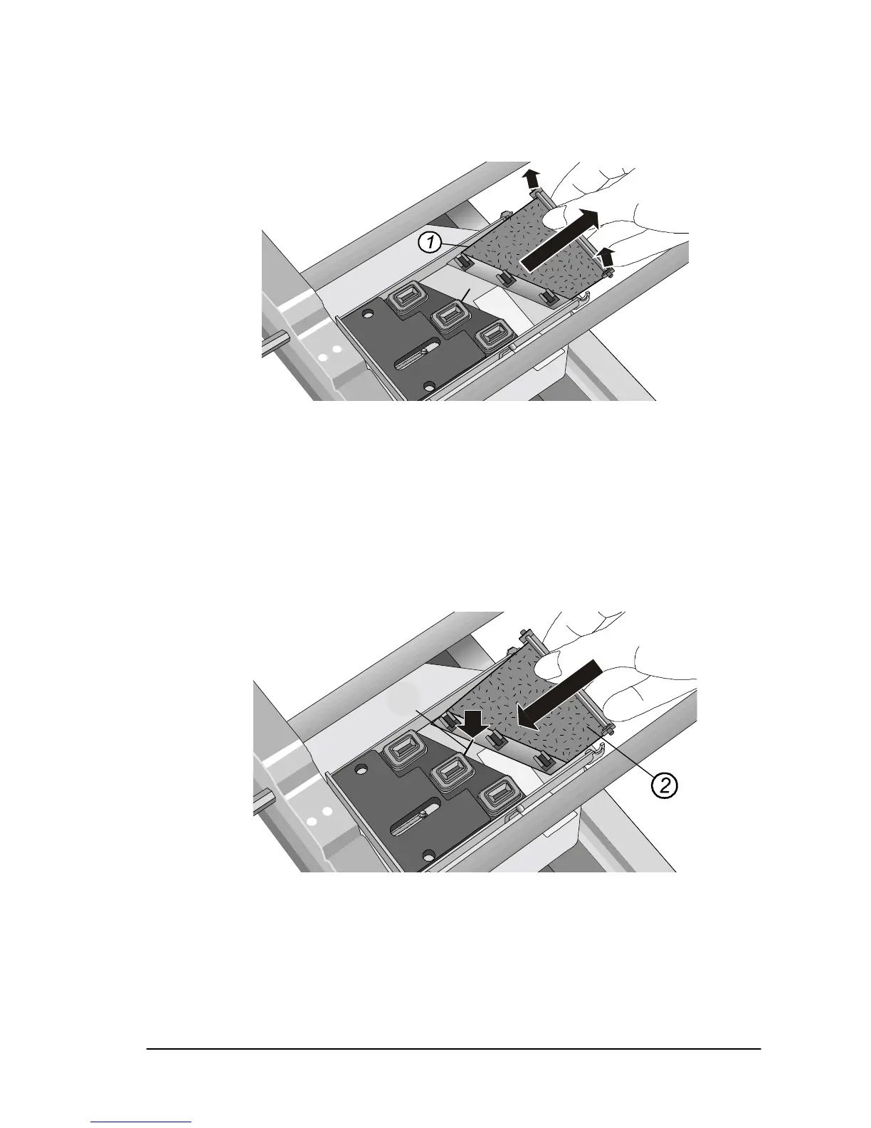 • Lift the carrier plate (1) out of its cradle by its front edge and