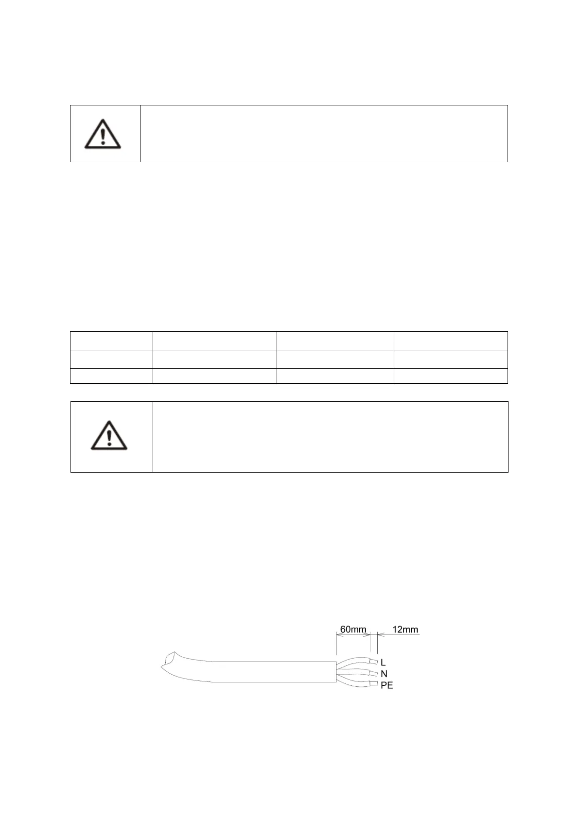 Trip all the wires (L, N and the PE wires) to 60mm.