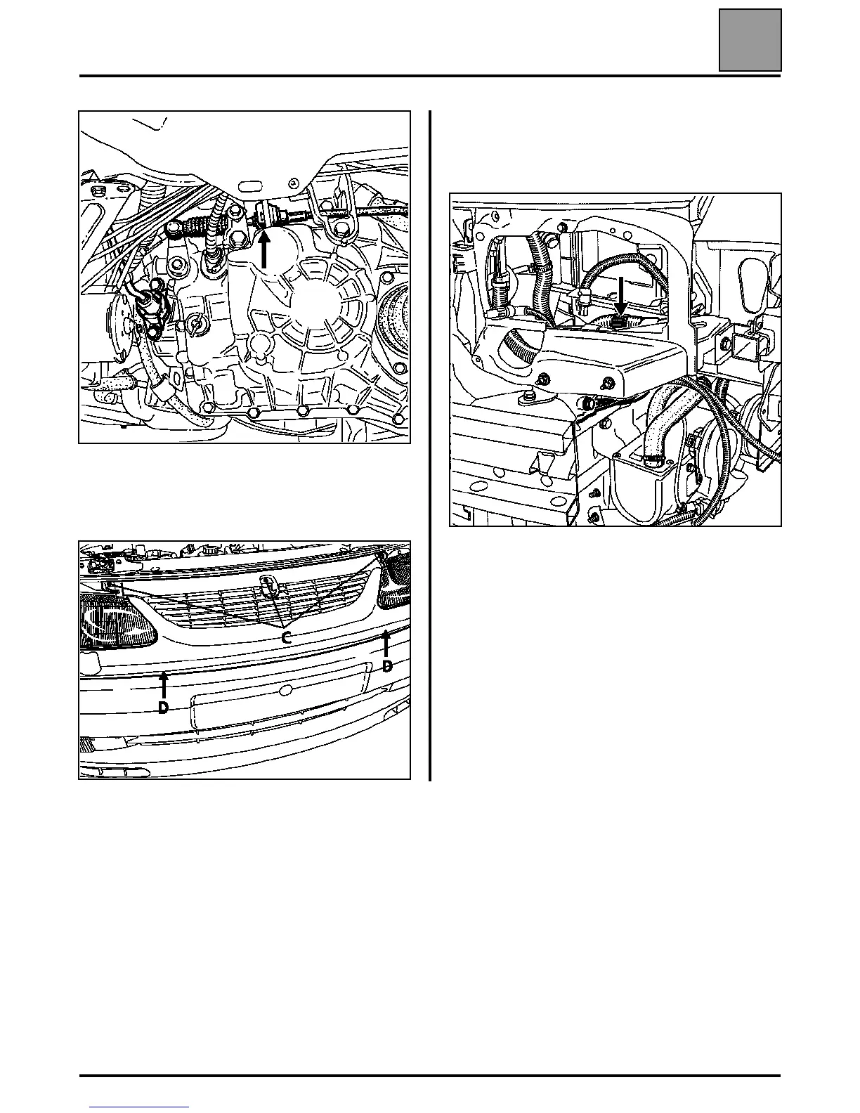 the radiator grille (bolts (C) and (D)),