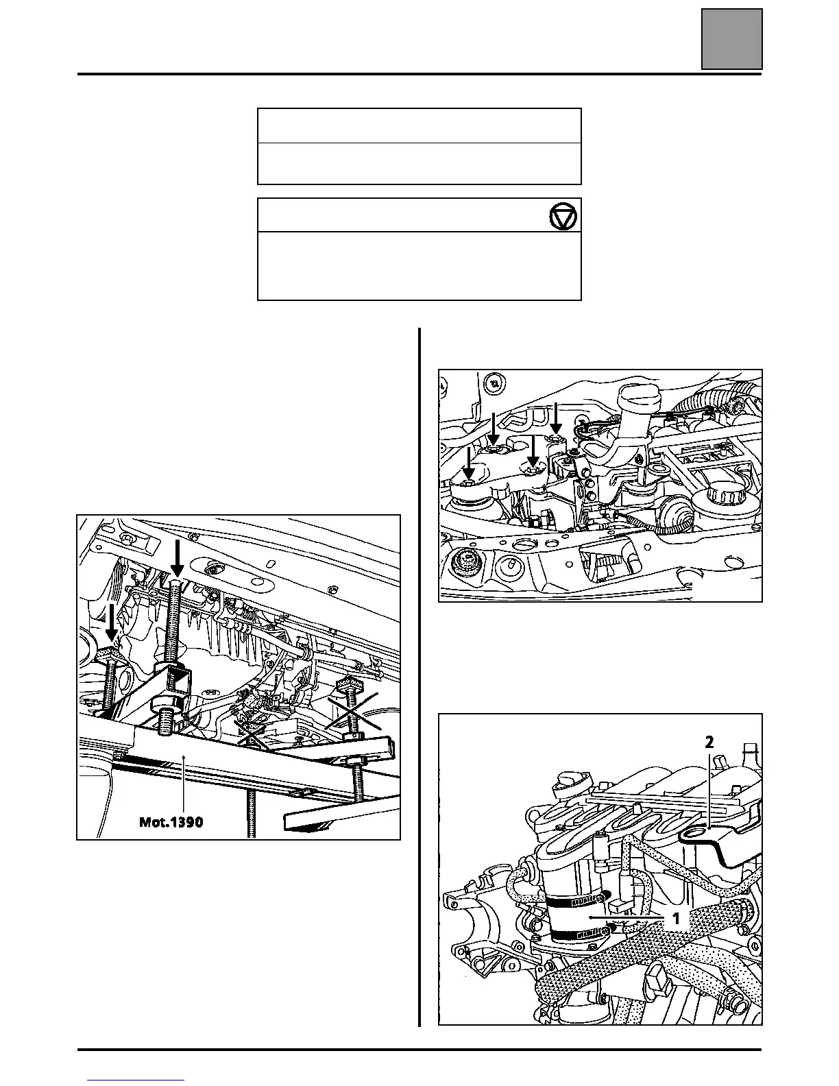 Insert the mounting tool Mot. 1390 under the engine