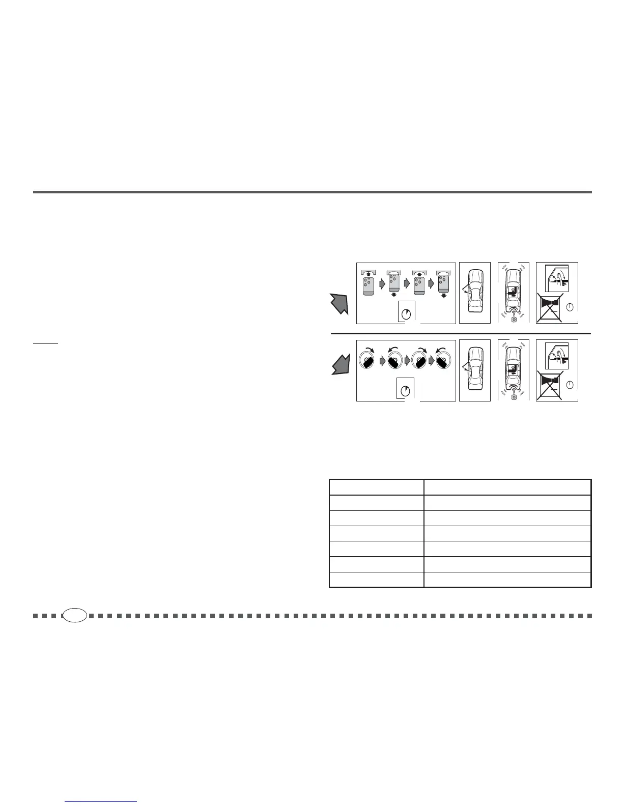 NOTE: If an alarm has occurred, the buzzer and turn indicators will give 4 signals instead
