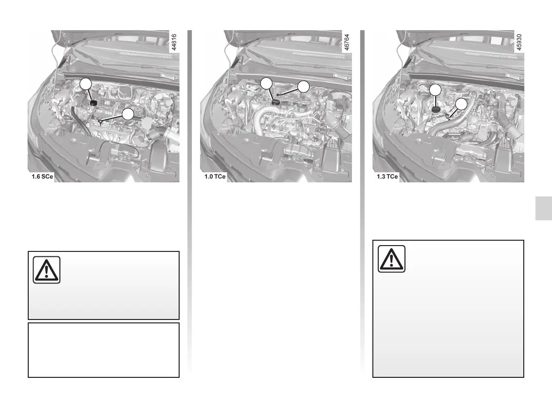 Engine oil level: topping up, filling