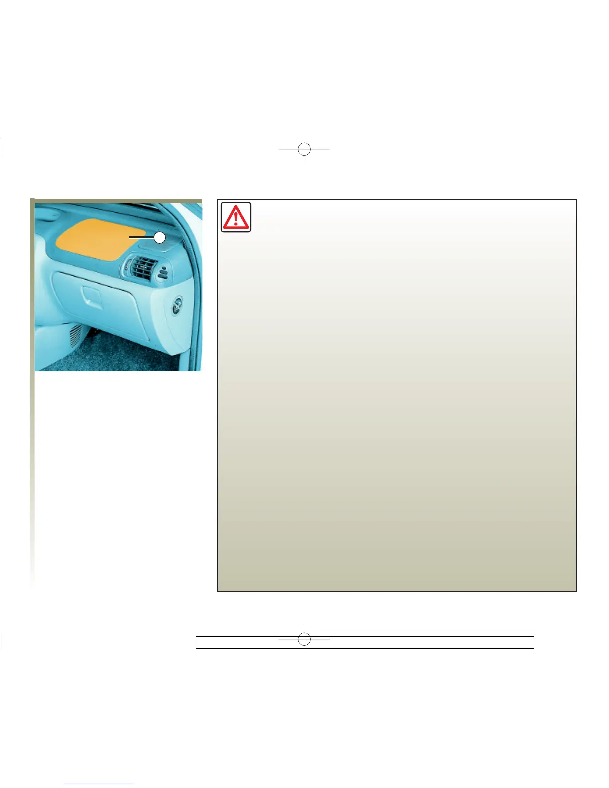 • The passenger must not put his or her feet on the dashboard or seat as there
