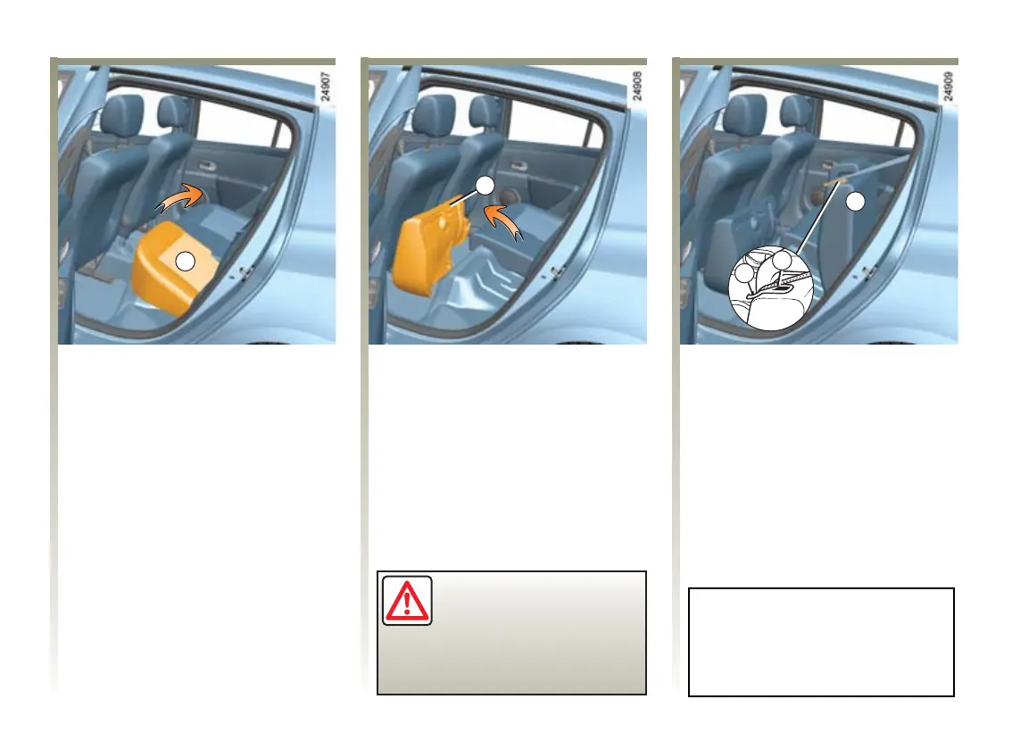 Place the seat belts in their guides B.