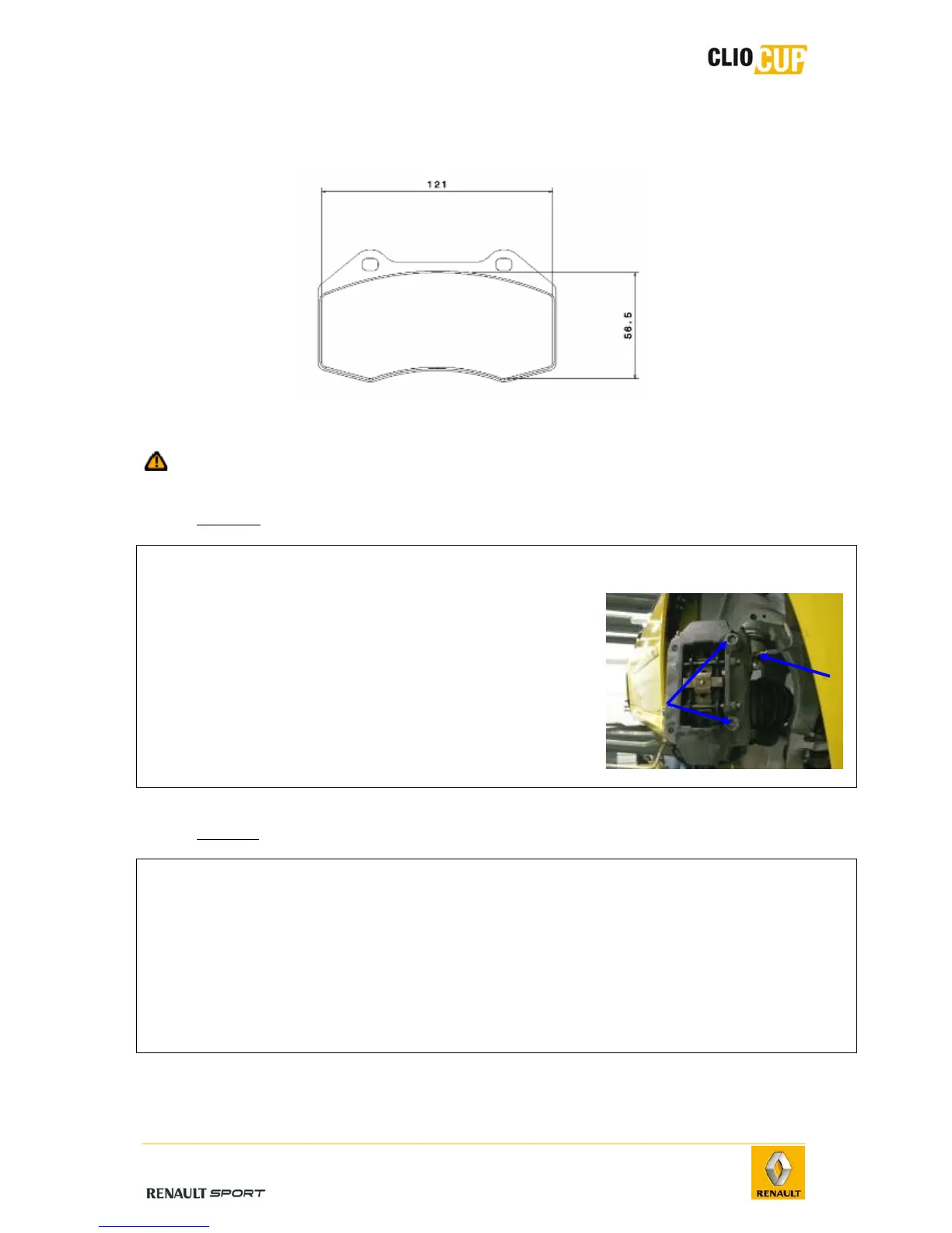 The maximum front brake pad friction material surface area tolerated on the Clio Cup is