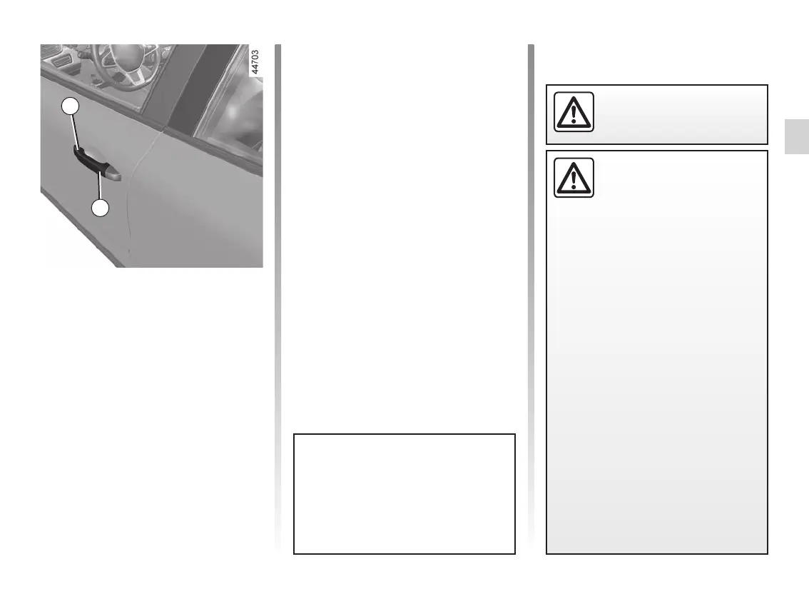 the 1 handle of one of the front doors;