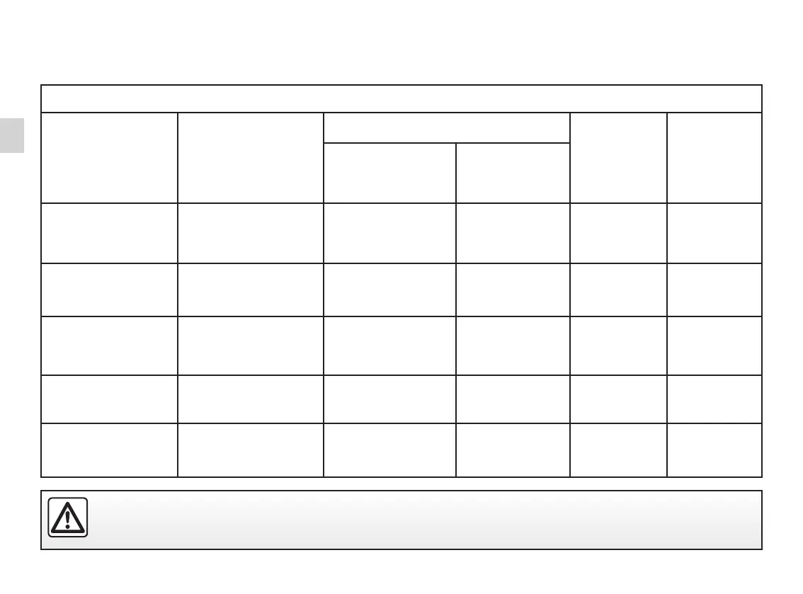 The table below summarises the information already shown on the diagram on the previous page, to ensure the regula-