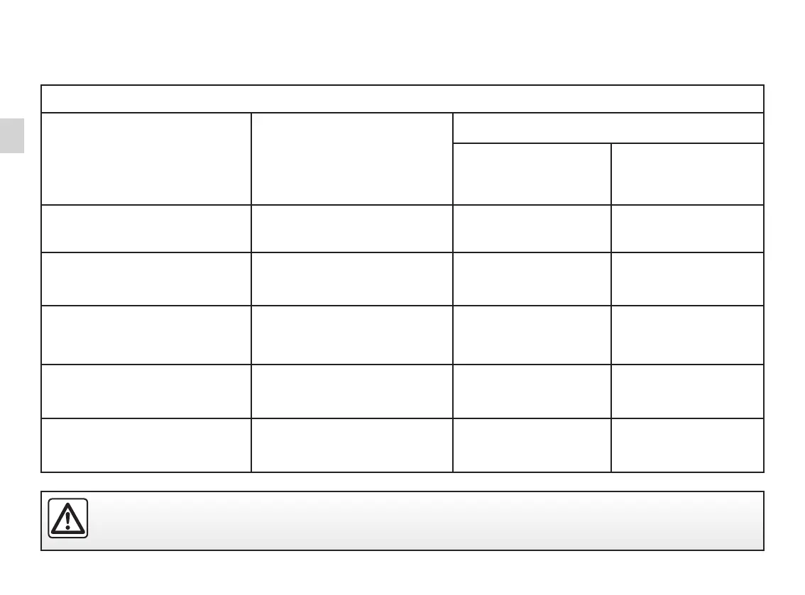 The table below summarises the information already shown on the diagram on the previous page, to ensure the regula-