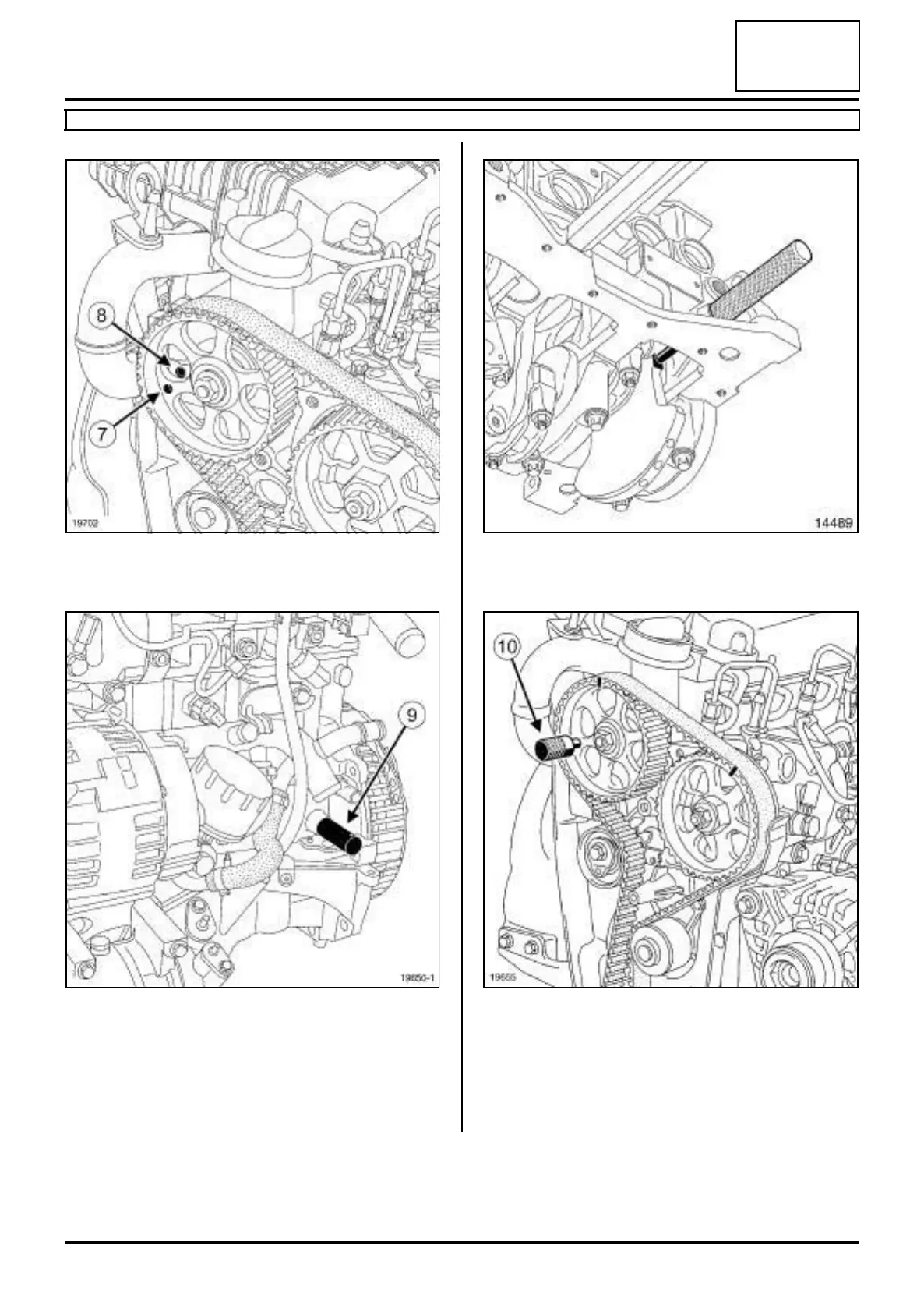 a Screw tool (Mot. 1489) (9) into the cylinder block.