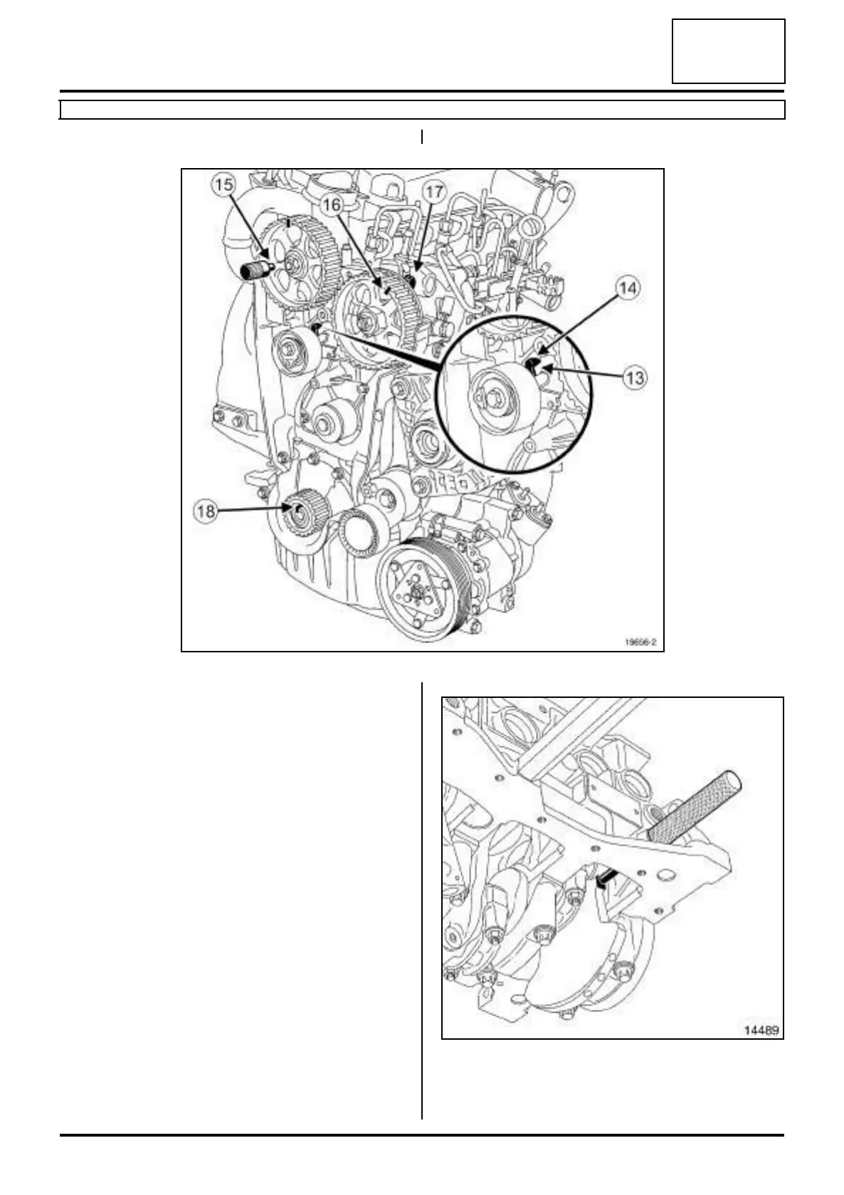 a Put the tensioning roller lug (13) in the cylinder head