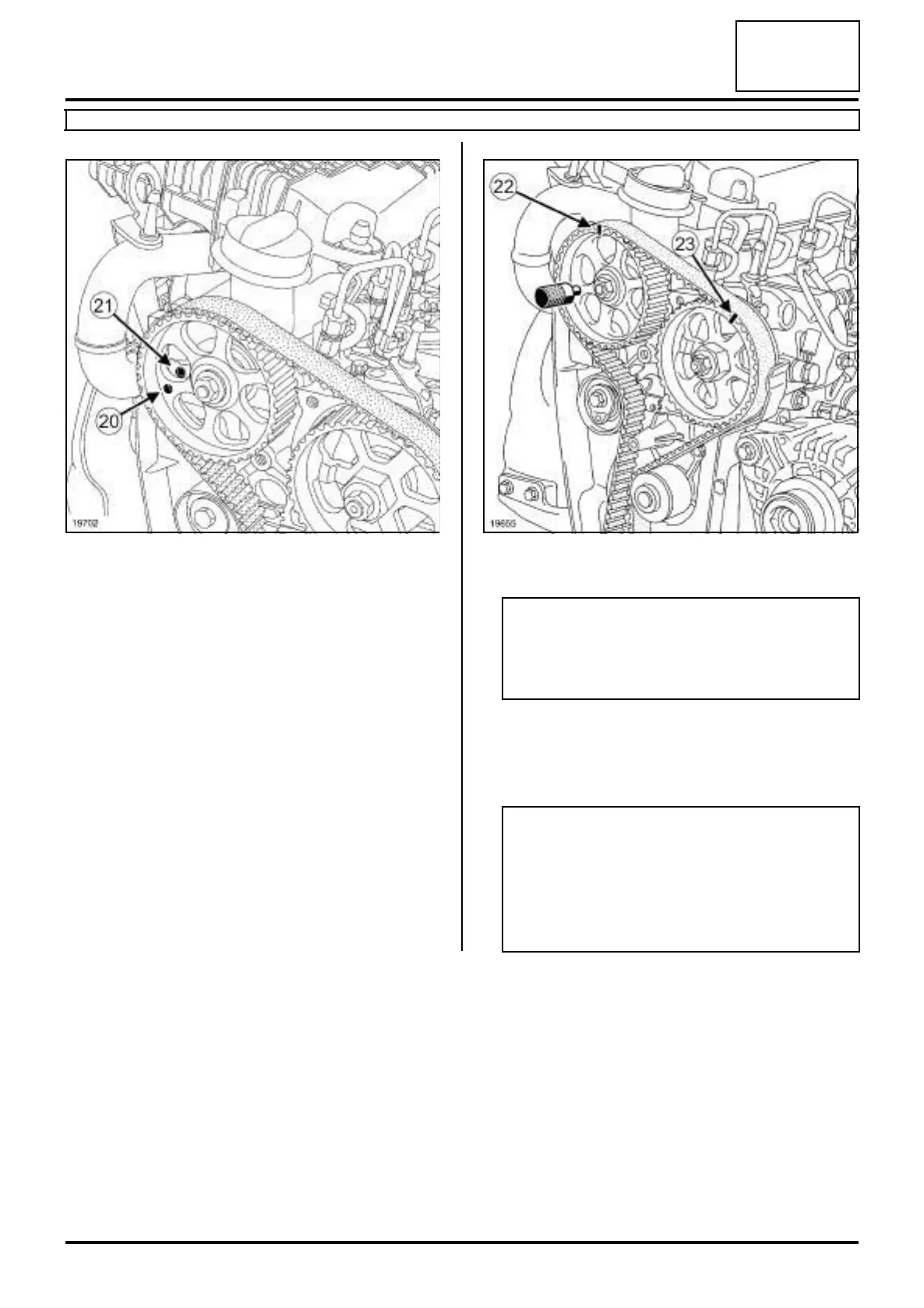 a Before the camshaft pulley hole (20) is opposite the