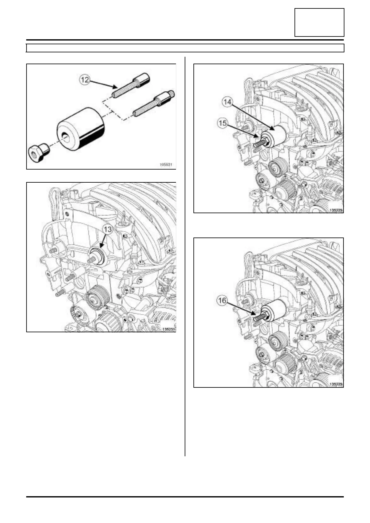 a Screw on the stud (12) of the toolon the inlet and ex-