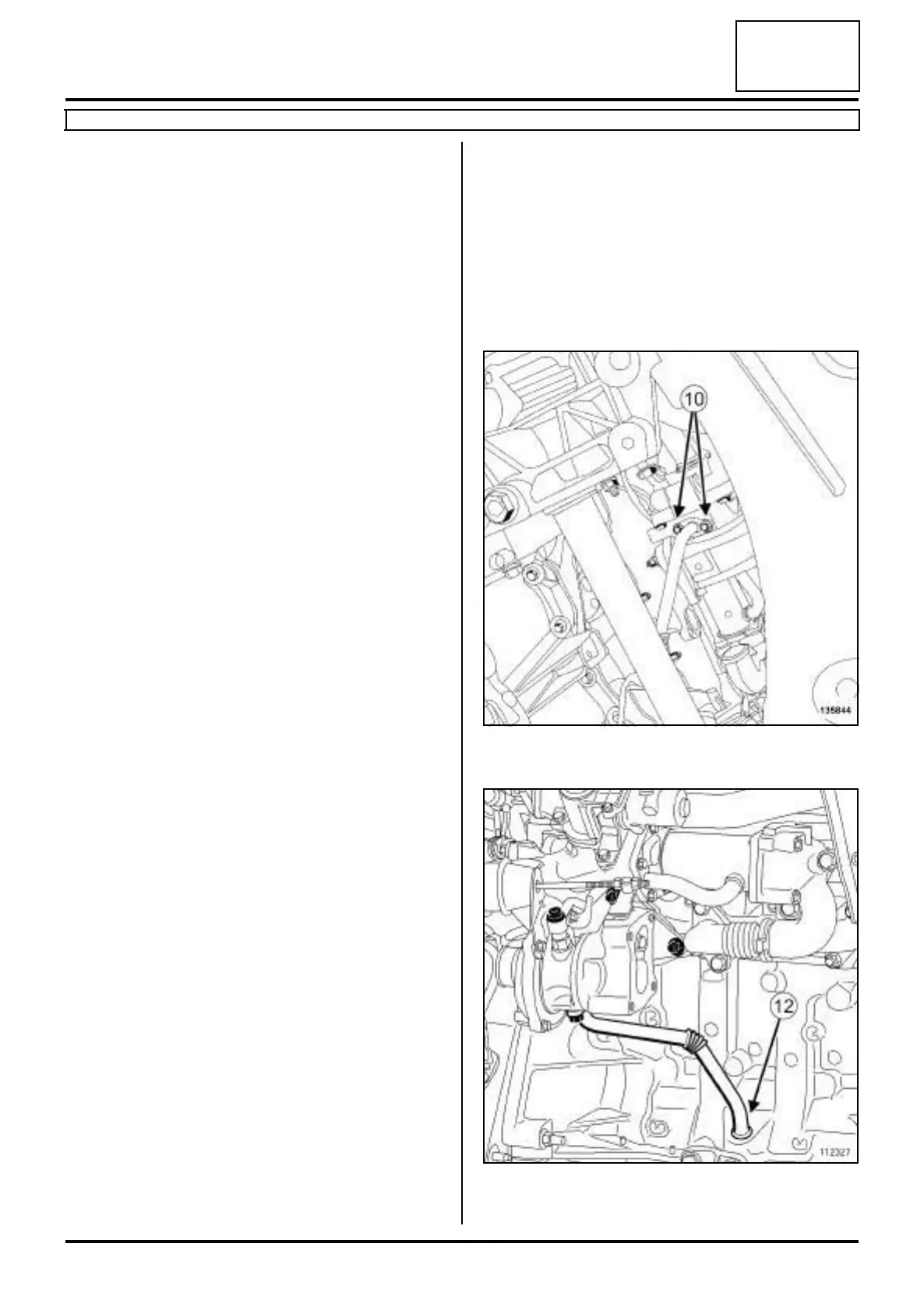 a Rotate the turbocharger oil return pipe (12) to facili-
