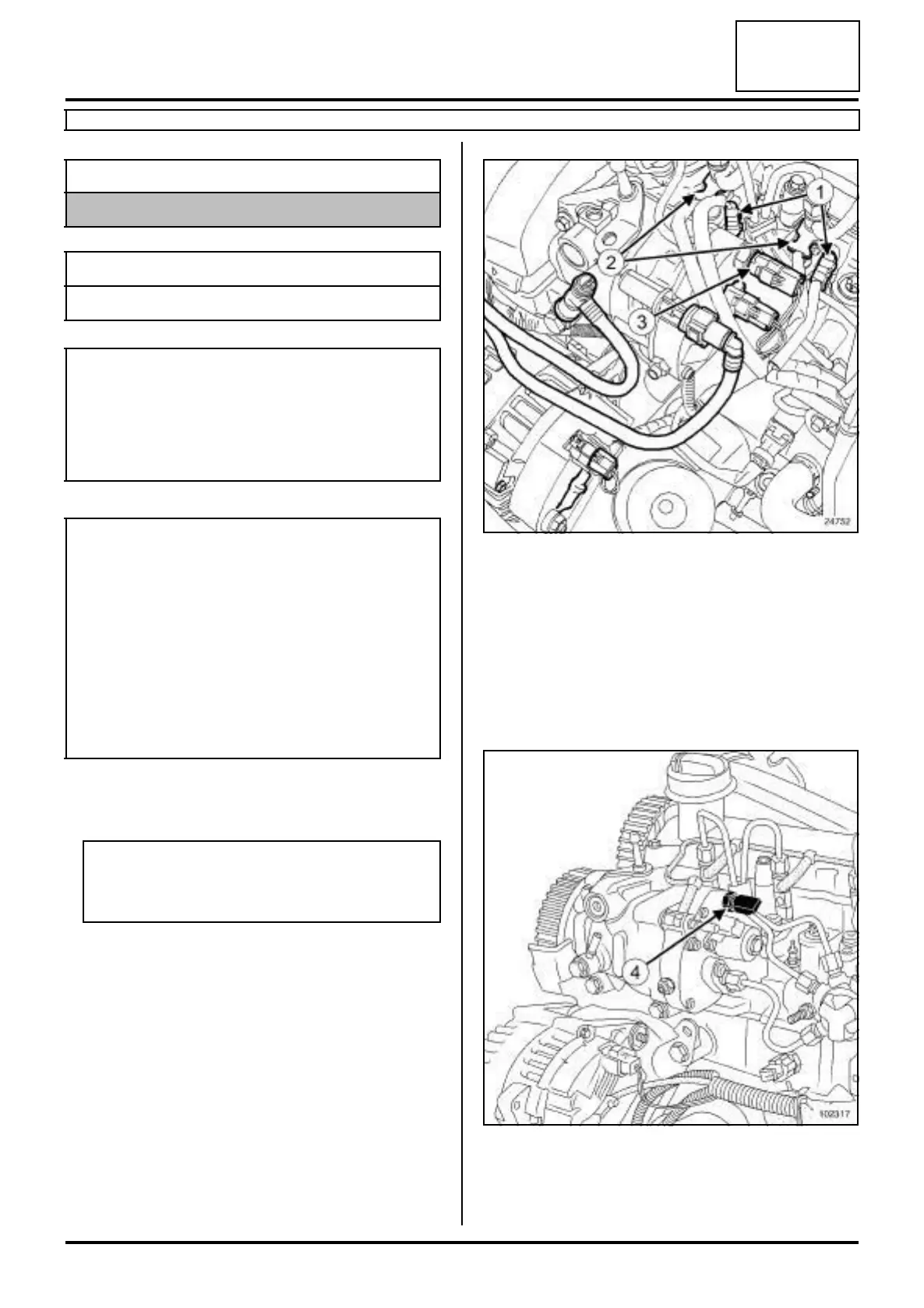 - the heater plugs (1) on cylinders 3 and 4,