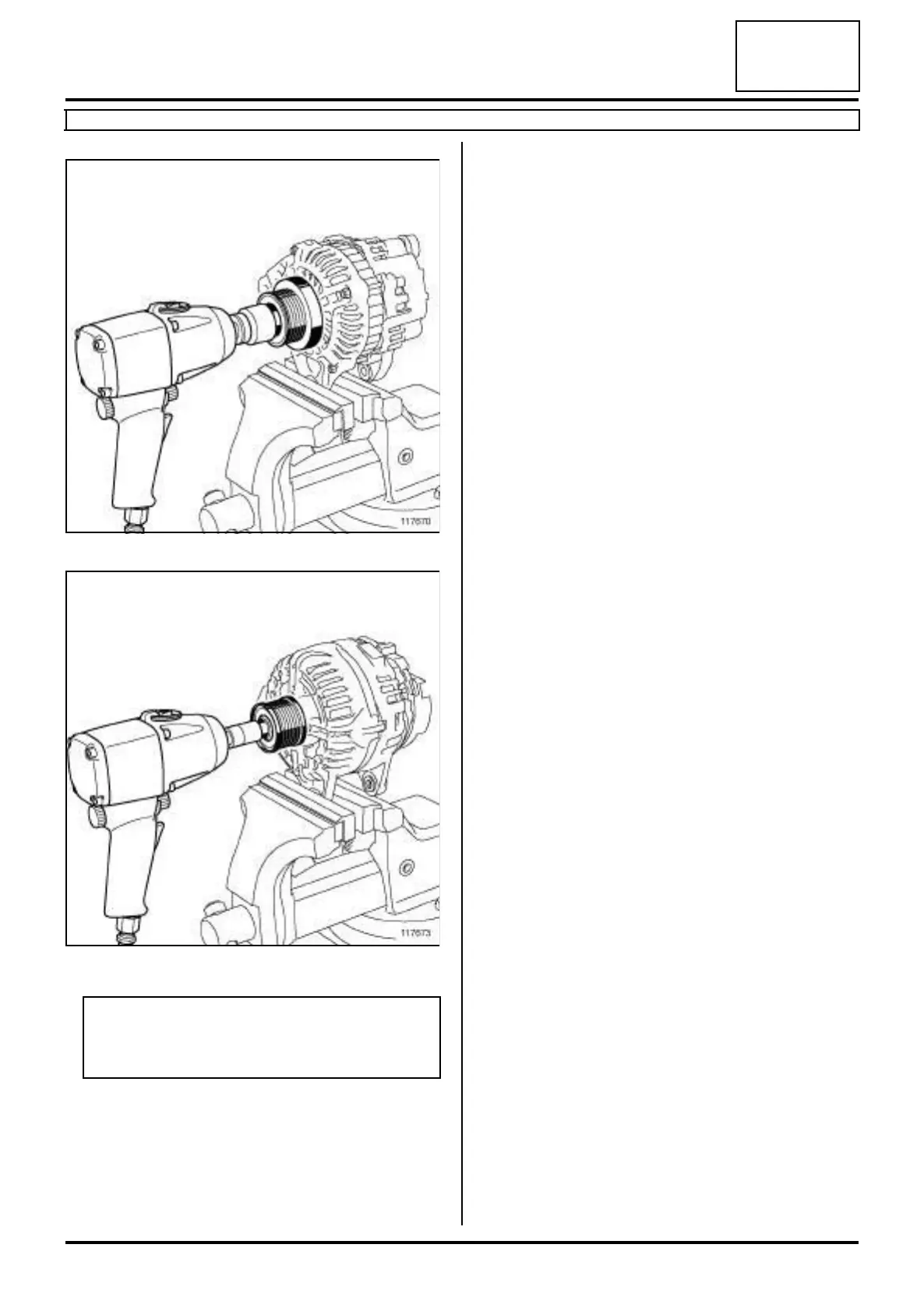Loosen the alternator pulley using a pneumatic or