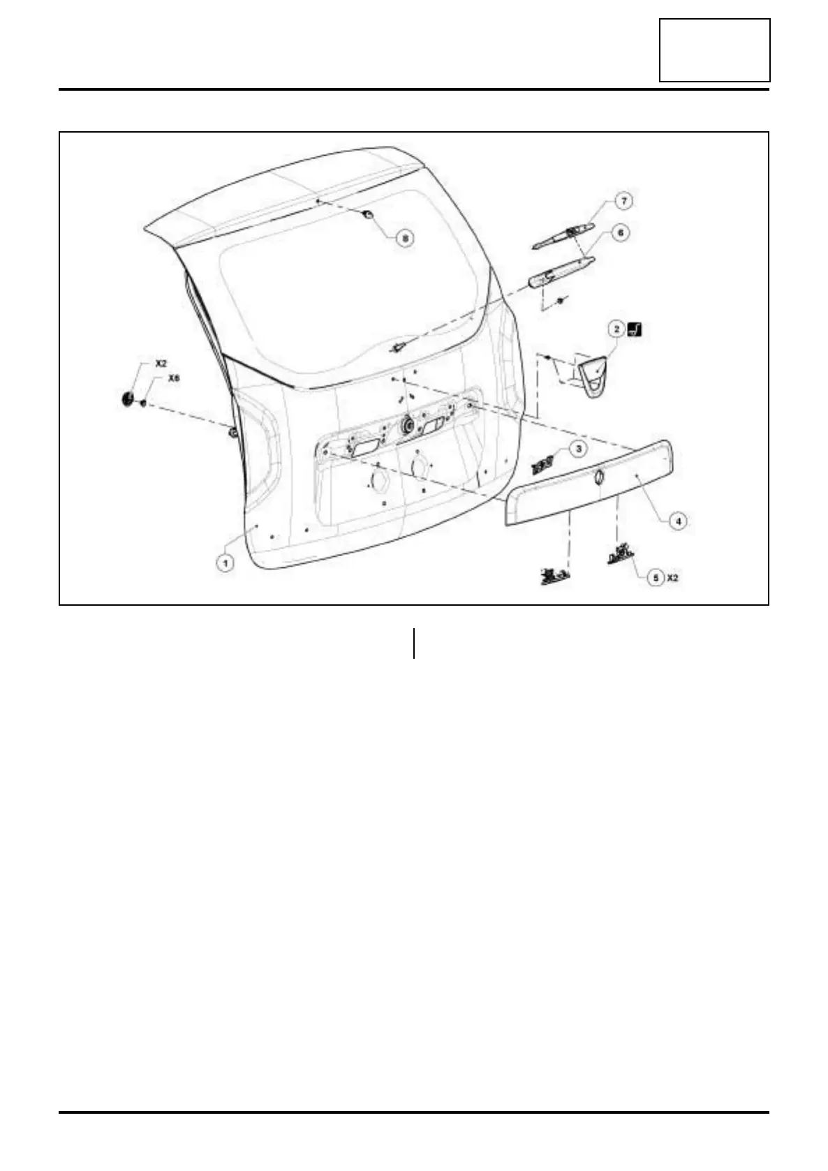 Renault Duster 2007 - Exterior Rear Opening Element Assembly: Exploded View; Non-Side Opening Element Mechanisms