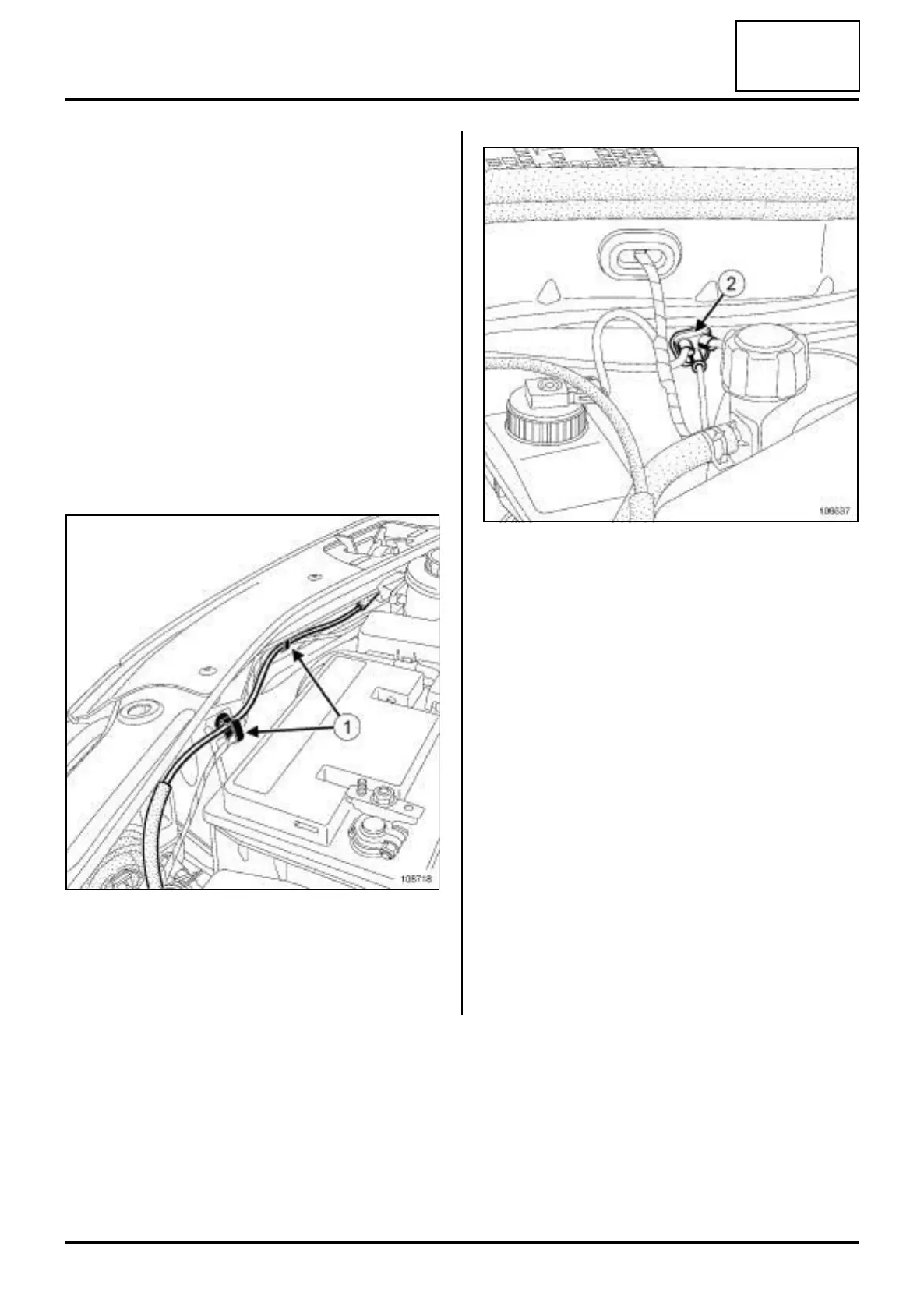 a Unclip the bonnet opening cable at (1) .