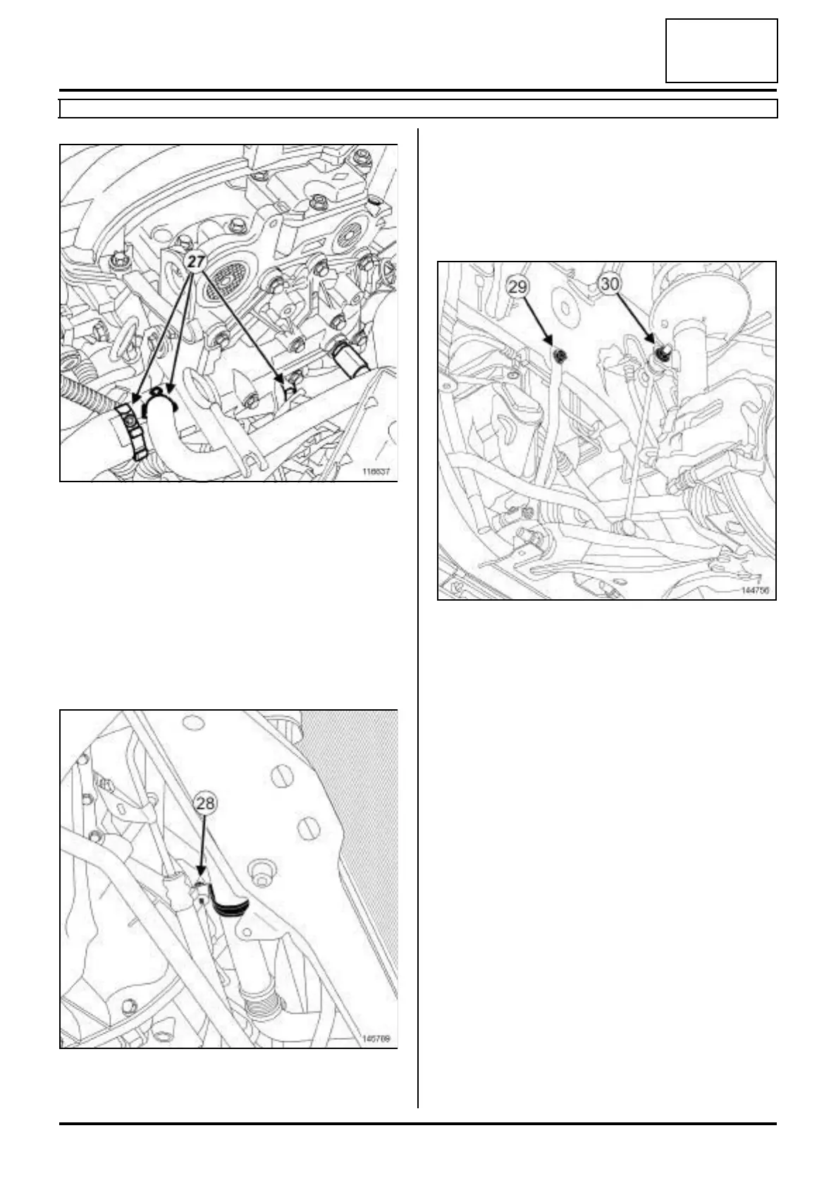 a Move aside the clips (27) of the coolant hoses on the