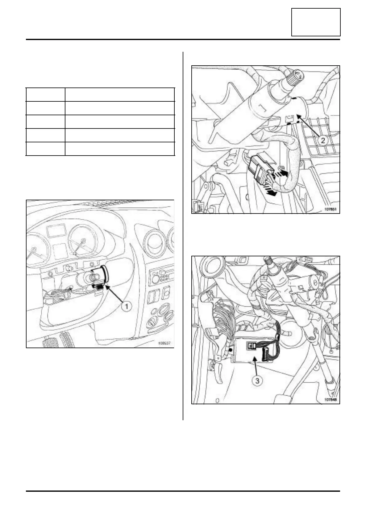 Immobiliser system: List and location of components