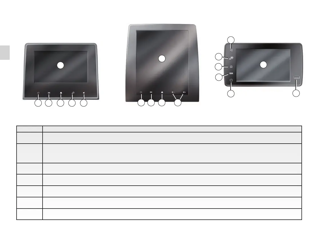6 Volume adjustment (1 or 2 buttons, depending on the screen).